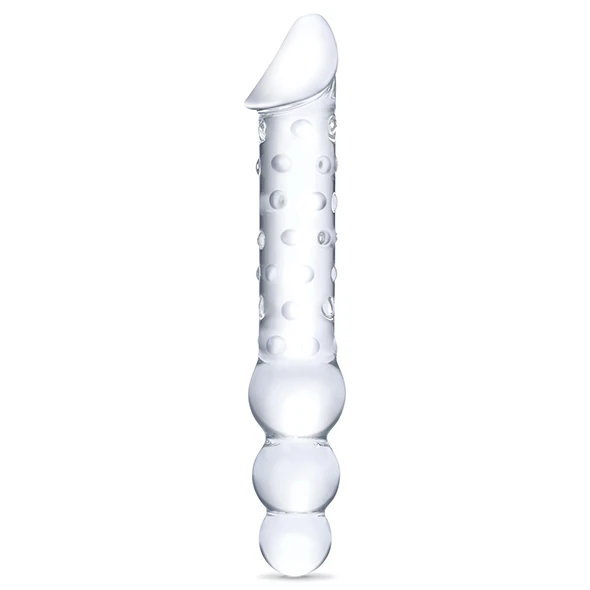 Насладете се на удоволствието и отпред, и отзад от това дилдо с двоен край, което прави всичко, което бихте искали от него. 30 см стъклено дилдо с двоен край с анални мъниста е настроено да ви отведе в оргазмично приключение с два уникално проектирани края за масаж на вътрешните ви ерогенни зони, които копнеят за директна, твърда стимулация, която предоставят стъклените играчки. Позволете на фантазиите си да се развихрят, докато мечтаете за най-желания си любовник. Той е с реалистичен връх, който прониква дълбоко и ви изпълва с голямата си ширина. От другия край, краят с мъниста е оразмерен, за да ви позволи лесно да си проправите път към по-дълбоко проникване, ако сте начинаещ в аналния секс. И двата края на това голямо дилдо също са лесни за хващане, което ви позволява лесно да хващате и маневрирате с играчката, за да стигнете до умопомрачителни оргазми без усилие. Изработен от хипоалергенно, безопасно за тялото стъкло.