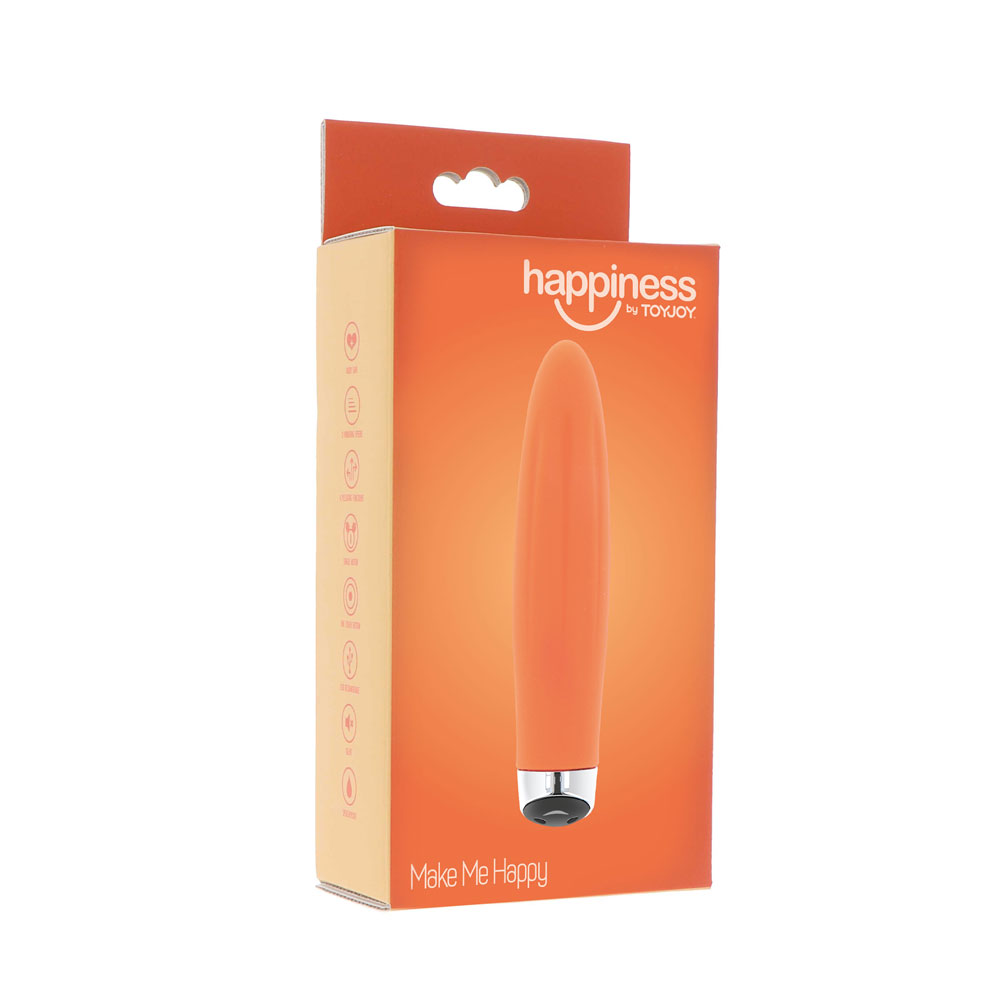 Make Me Happy Vibe е създаден, за да направи щастлива всяка търсачка на силни усещания блажено щастлива. Компактното му тяло крие в себе си 4 режима на вибрация + 3 скорости, които могат лесно да се регулират чрез управление с едно докосване.