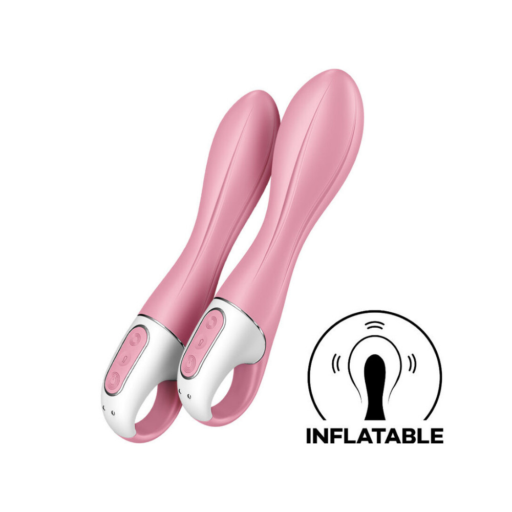 Диаметърът на вибраторите Satisfyer Air Pump може да се изпомпва до допълнителни 15 mm с натискане на бутон. Можете постепенно да увеличавате диаметъра и да спрете в средата, когато достигнете оптималния размер за вас. При продължителен натиск вибраторът достига максималния си диаметър само за 12 секунди, а с двойно щракване върху бутона можете лесно да изпуснете отново въздуха.