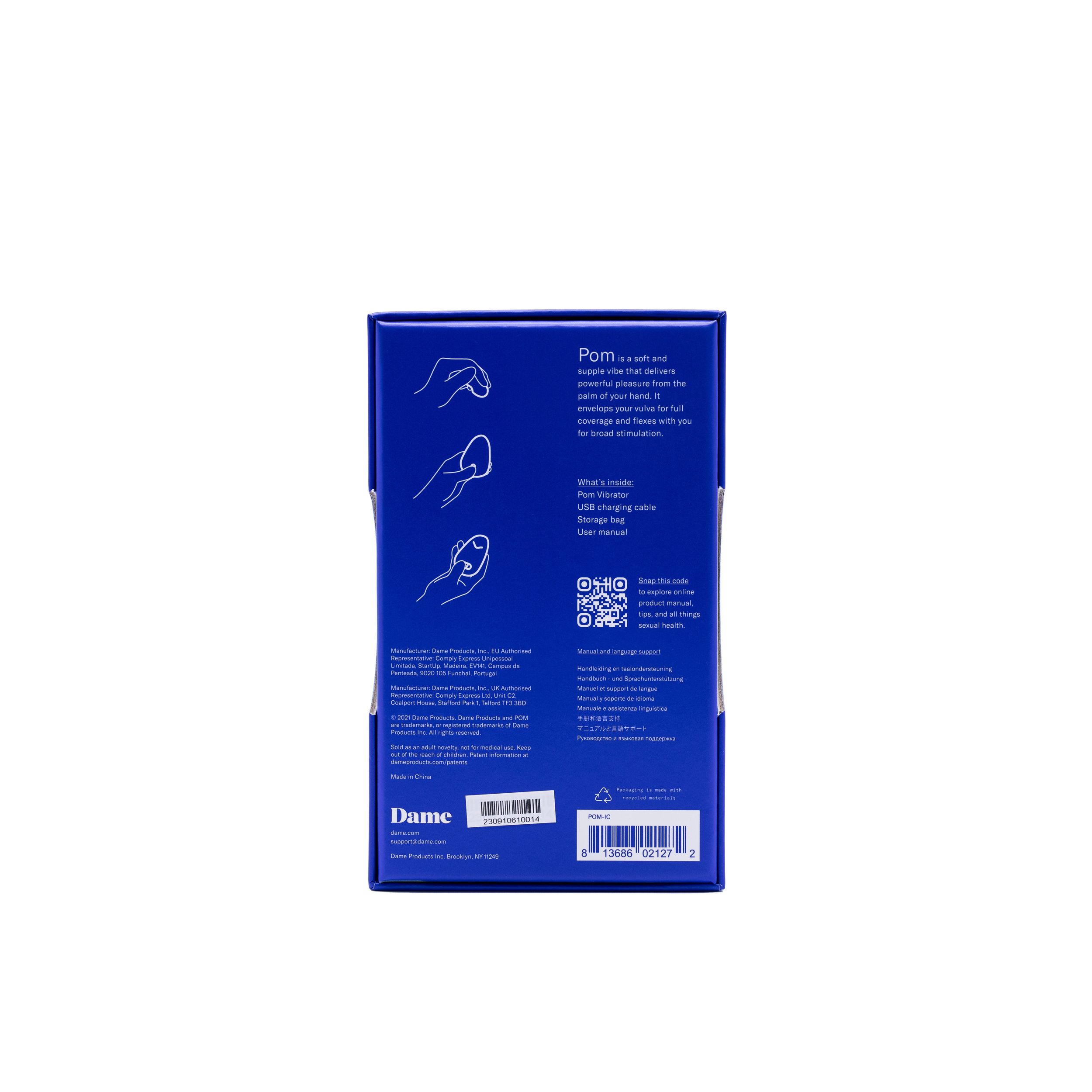 Pom седи удобно в ръката ви, за да осигури широка или целенасочена стимулация. Неговото меко, гъвкаво тяло разполага с мощен мотор с пет модела и опцията да изберете свой собствен интензитет или да използвате една от петте предварително зададени скорости. И е водоустойчив, за забавление по всяко време на сушата или в морето.