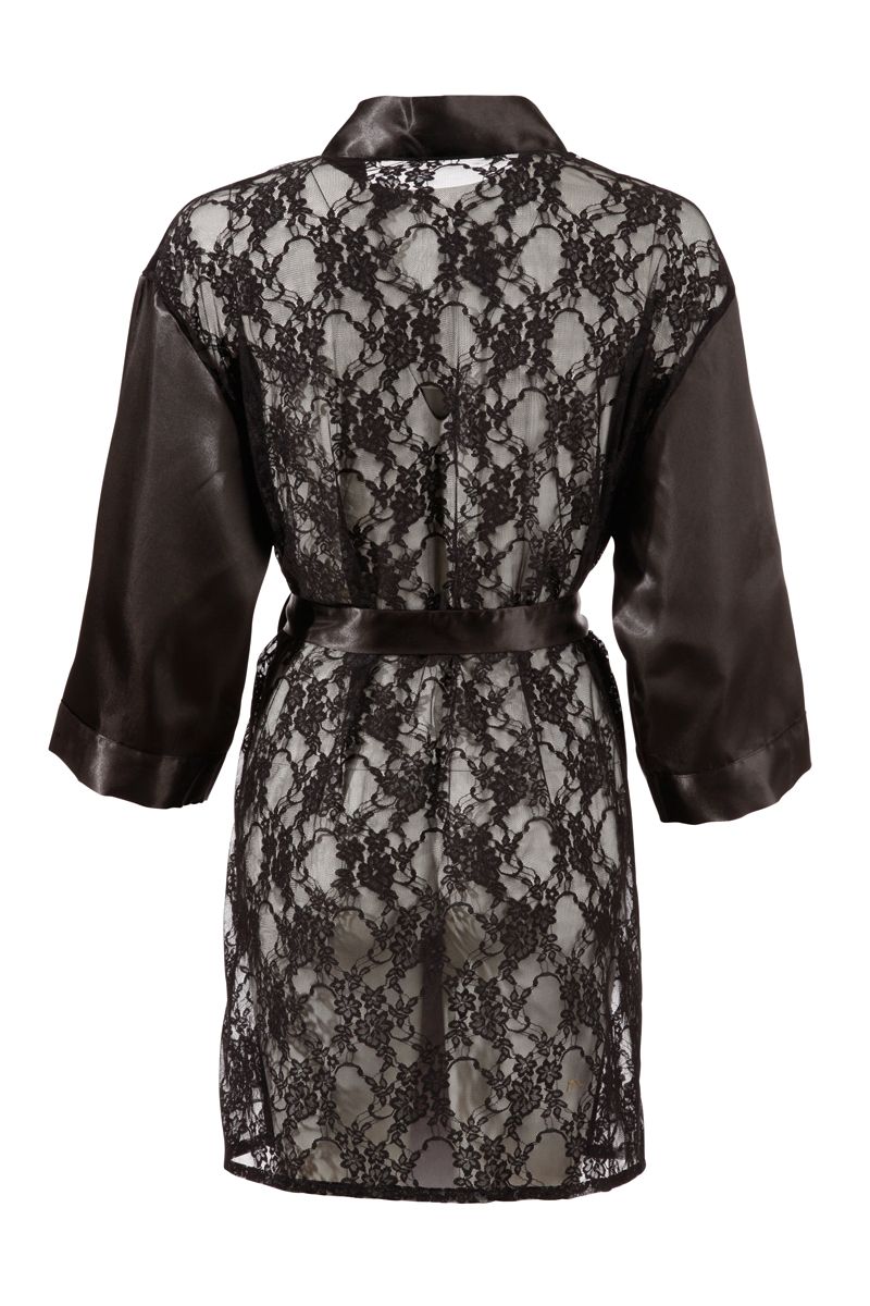 Чувствайте се секси и уверени в това прекрасно лъскаво кимоно! Мекият, гладък материал се чувства чудесно на кожата ви и е много удобен за носене благодарение на свободната кройка. Коланът закрепва кимоното около кръста ви. Целият гръб е от черна дантела и е прозрачен. Това създава съблазнителен ефект и прави това кимоно идеалното облекло за една вълнуваща вечер в спалнята.