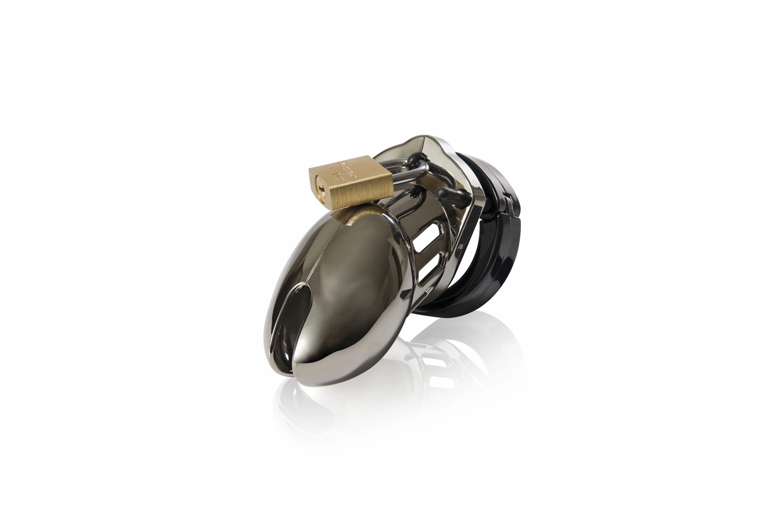 Дизайнът на Chrome CB-6000 е с красив завършек. Устройството за целомъдрие CB-6000 -дизайнерска колекция предлага максимално удобство и сигурност. Пръстените се състоят от три блокиращи се фигури, които се вписват заедно като пъзел. Двата направляващи щифтове държат горните части заедно. Овалният фиксиращ щифт преминава през средния вдлъбнат отвор, свързващ частта на клетката с пръстена. Плоският дизайн на пръстените е изключително удобен и сигурен. CB-6000 е изработен от медицински поликарбонатен материал. Той е лек, хипоалергенен и издръжлив. Частта на клетката се обезвъздушава за хигиена и има отвор на дъното, позволяващ използване при писоари. Различните размери и пръстени, включени във всеки пакет, ви позволяват да персонализирате вашите нужди според вашите индивидуални желания. CB-6000 ви ограничава да докосвате гениталиите си за сексуално удоволствие и дава на притежателя на ключовете контрол върху сексуалното изпълнение на двамата партньори.