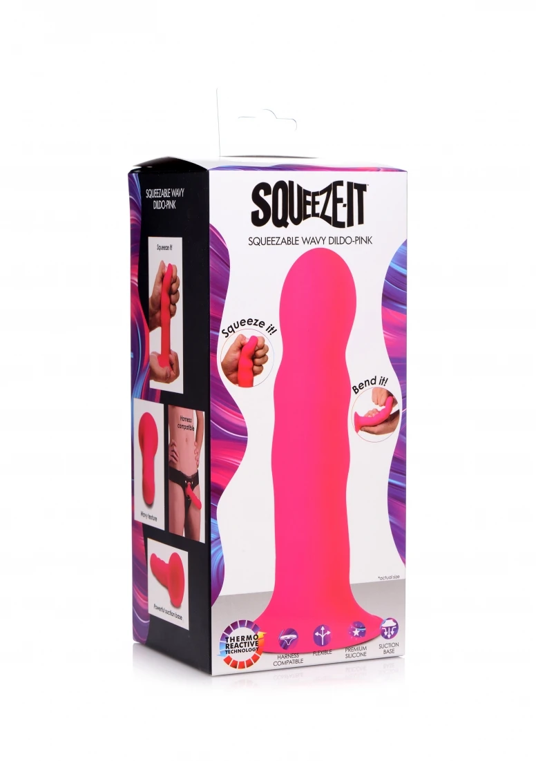 SQUEEZE-IT e гъвкаво дилдо, изработено от премиум силикон. Дилдото има смукателна основа, което ви позволява да го закрепите на всяка гладка повърхност. То е изработено с термореактивна технология, конусни елементи за лесно поставяне, изключително гъвкави.