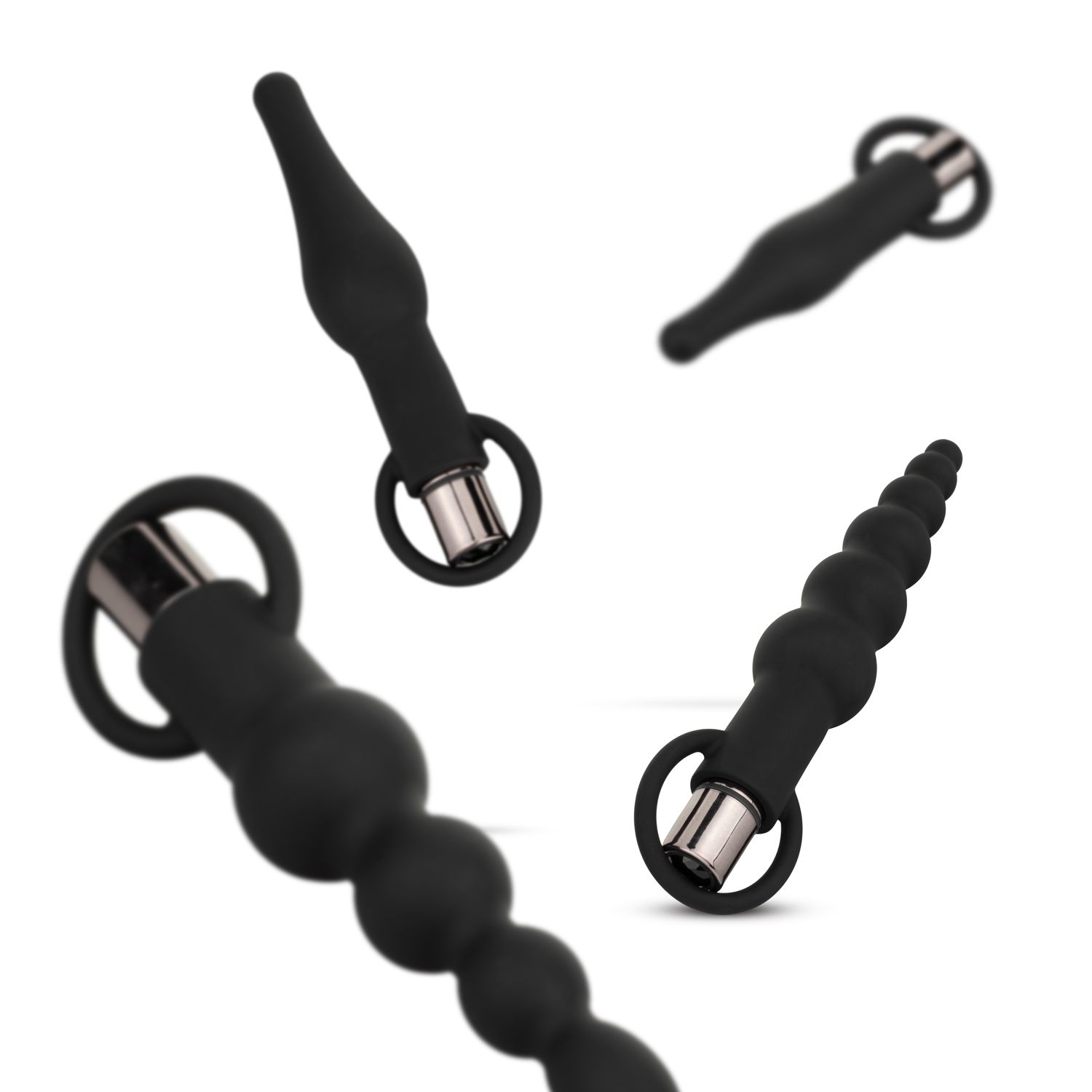 Открийте безгранично удоволствие с този пълен комплект анални тапи. Комплектът включва четири тапи с различни размери, идеални както за начинаещи, така и за опитни потребители. Изработени от висококачествен силиконов материал за комфортно и сигурно изживяване. Комплектът се предлага с подвижен вибратор-кубик, включващ седем вълнуващи модела и три стимулиращи режима за персонализирано удоволствие. Зарежда се с USB за лесна и устойчива употреба. Открийте нови усещания и се отдайте на върховна стимулация с този универсален комплект! Малък тап с мъниста: 15 см – 58 грама Големи тапи с мъниста: 17,27 см – 81 грама Класически малък тап: 15 см – 54 грама Класически голям тап: 16 см – 74 грама