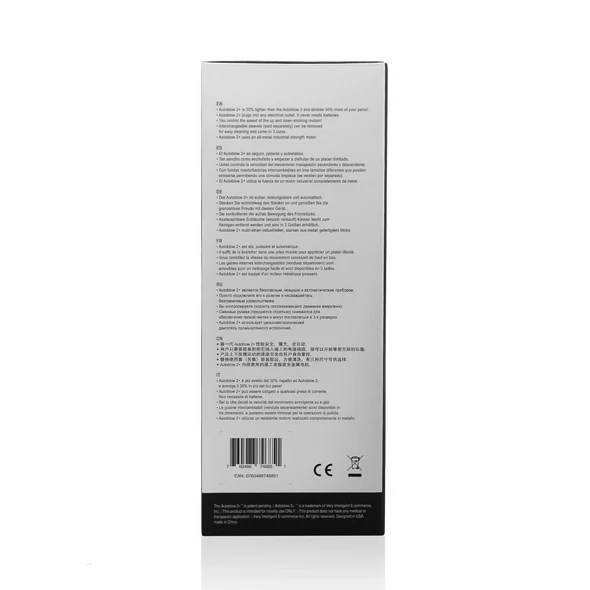 Единствените 6 неща, които трябва да знаете за Autoblow 2: 1. Включете го: Autoblow 2 не се нуждаете от батерии. Просто го включите във всеки електрически контакт (110v-240v). Не се прилагайте, проектирането е така, че да е безопасно. 2. Система ръкави: Използва сменяеми ръкави. Ръкавите са лесни за почистване, могат да се използват многократно и да се предлагат в няколко размера, подходящи за всички мъже. 3. Свободни ръце: Просто задръжте Autoblow 2 на място и той ще свърши цялата тежка работа вместо вас. Вие контролирате скоростта и интензивността на моторизираното движение нагоре / надолу. 4. Чувства се страхотно: Първата наистина реалистична алтернатива на популярните продукти за удоволствие за мъжете. Перфектен и за двойки! 5. Здрава конструкция: Autoblow 2 използва изцяло метален двигател с мощност 500 часа работа. 6. Хигиенни: Сменяемите ръце могат лесно да се почистват с помощта на сапунена вода или почистващ препарат за играчки. Перфектно прилягане на всеки мъж всеки път.