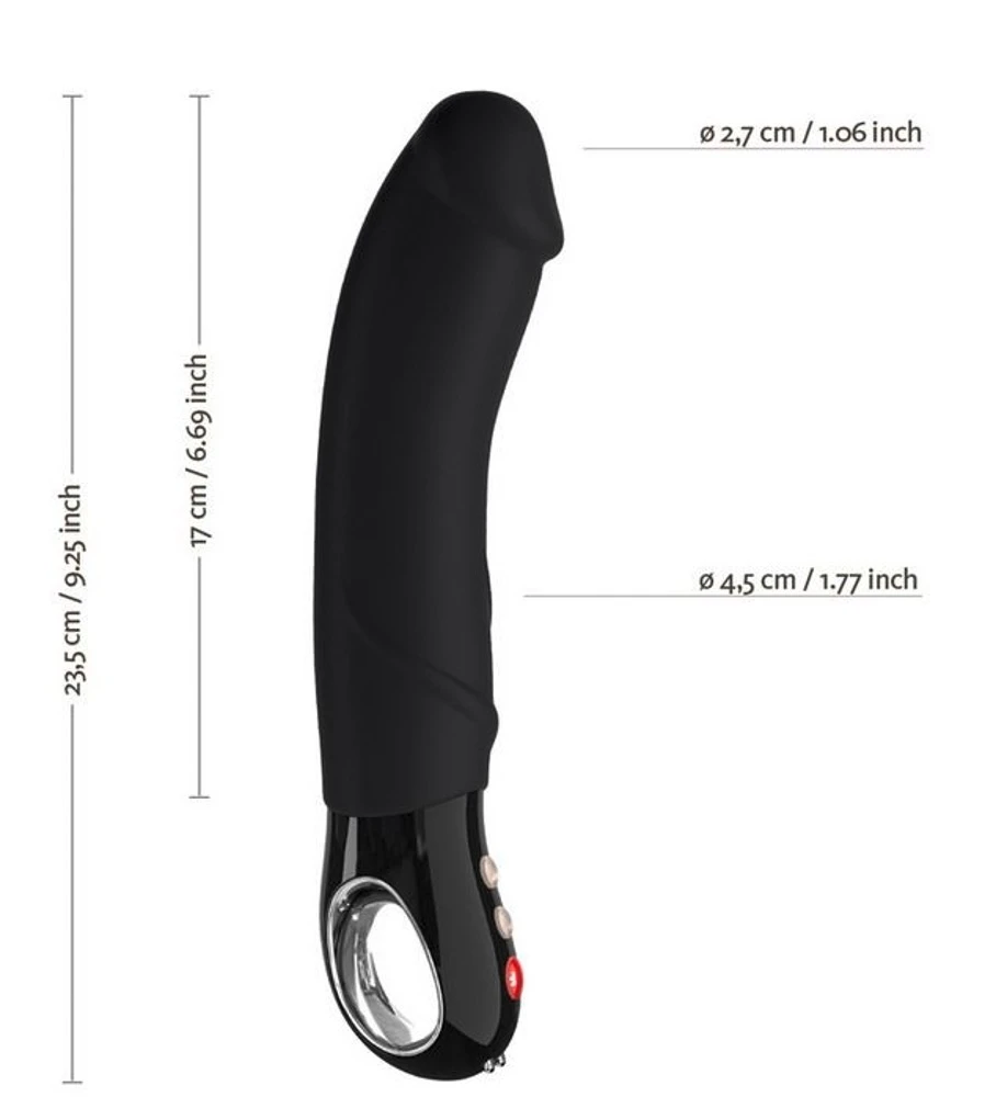Този черен вибратор е страхотен, защото има мощен мотор, който кара тази лесна за хващане играчка да трепери мощно, но тихо с дълбоките си вибрации чак до върха. Вълнуващите вибрации имат 6 ритъма и 6 интензитета, които могат лесно да се регулират с бутоните! Вибраторът може също така интензивно да стимулира G-точката, благодарение на голямата си глава. Ще ви хареса!