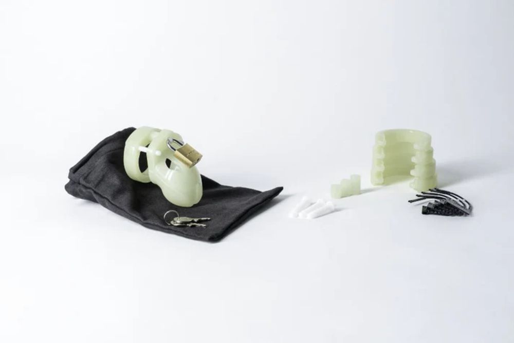 Изработен от висококачествени и издръжливи материали, комплектът за целомъдрие Mr. Stubb е първокласна модулна система, проектирана за перфектно персонализирано прилягане. Този пълен комплект за целомъдрие CB, светещ в тъмното, включва U-пръстени, заключващи щифтове, дистанционни елементи и ключалки, което ви позволява да създадете най-доброто изживяване с целомъдрие – идеален както за начинаещи, така и за опитни потребители. Mr. Stubb е компактна клетка за целомъдрие с размери 4,4 см, подходяща както за дългосрочно, така и за краткосрочно носене. Често имитирани, но никога ненадминати, комплектите и клетките за целомъдрие CB-X са 100% автентични, издръжливи и проектирани с мисъл за безопасността. Тази светеща в тъмното клетка за целомъдрие превръща играта ви с целомъдрие в истинска „лунна мисия“! Активиране на функцията „Светене в тъмното“: За да активирате функцията „Светене в тъмното“, изложете клетката за целомъдрие, U-пръстените и дистанционните елементи на светлина, зареждайки фосфорите, които след това ще излъчват светлина. Времето за зареждане зависи от източника на светлина. Избягвайте продължително излагане на пряка светлина, за да поддържате сиянието. Източници на светлина за активиране: 3-4 минути под UV/черна светлина, 7-8 минути на пряка слънчева светлина, 21-23 минути под флуоресцентна светлина (CFL крушки), 24-26 минути под лампи с нажежаема жичка (традиционни крушки с нажежаема жичка).