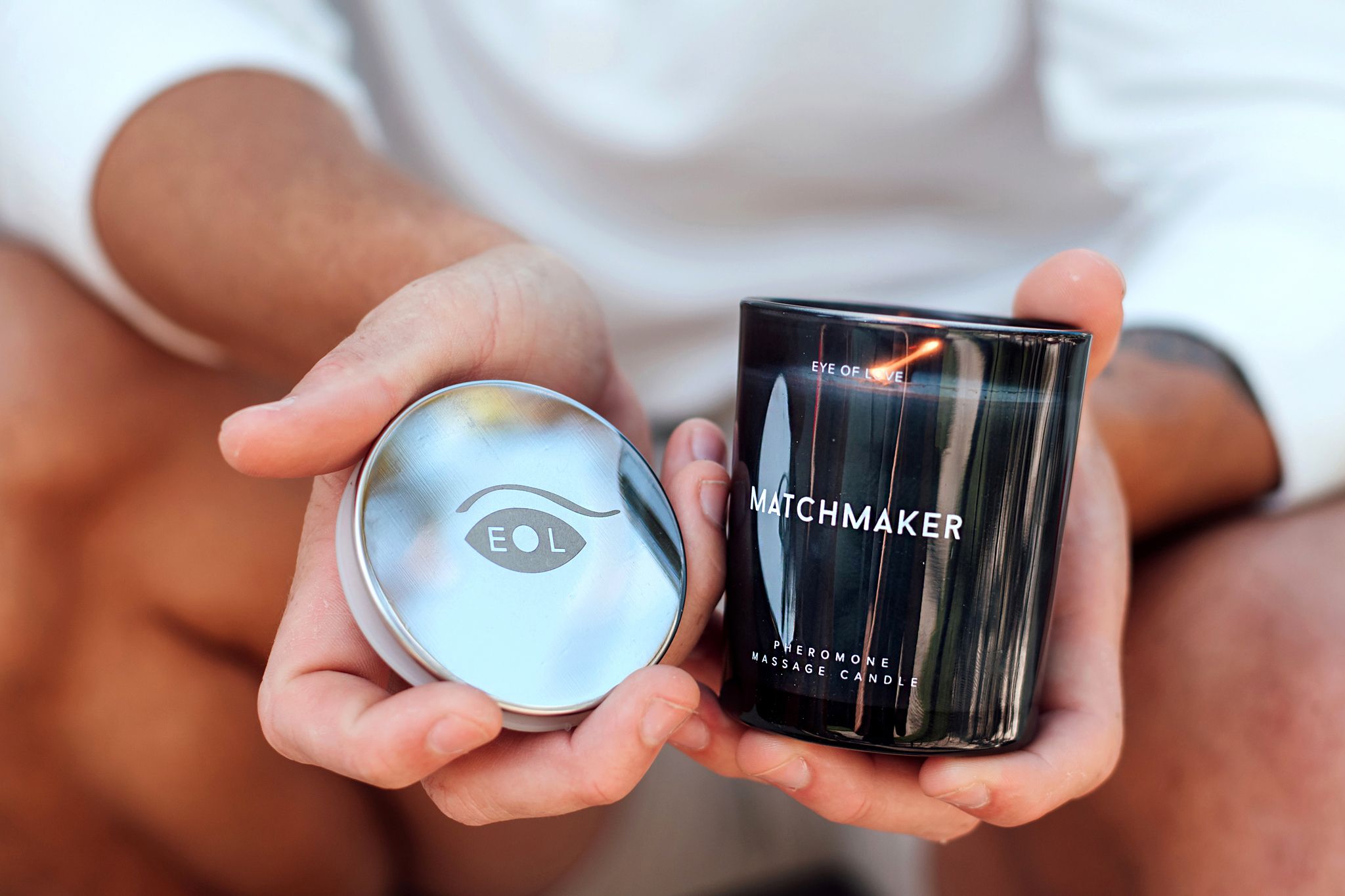 Потопете се в върховното чувствено изживяване с масажната свещ с феромони MATCHMAKER. Направена с основа от масло от ший и други натурални масла, тази луксозна свещ 3 в 1 създава съблазнителна атмосфера за чувствени масажи и оставя кожата мека и хидратирана. Създадена в сътрудничество с Millionaire Matchmaker, Пати Стангер, този аромат е смела смесица от кедър, касис и лимон с нотки на дъб, бял амбър и мускус. – Топи се в топло масло, което няма да изгори кожата ви – Съдържа натурални хидратиращи съставки – Съдържа висококачествени вегански феромони УПОТРЕБА: Запалете свещта и я оставете да гори, докато започне да се топи (около 20 мин.) Използвайте я като ежедневен хидратиращ крем или за чувствен масаж.