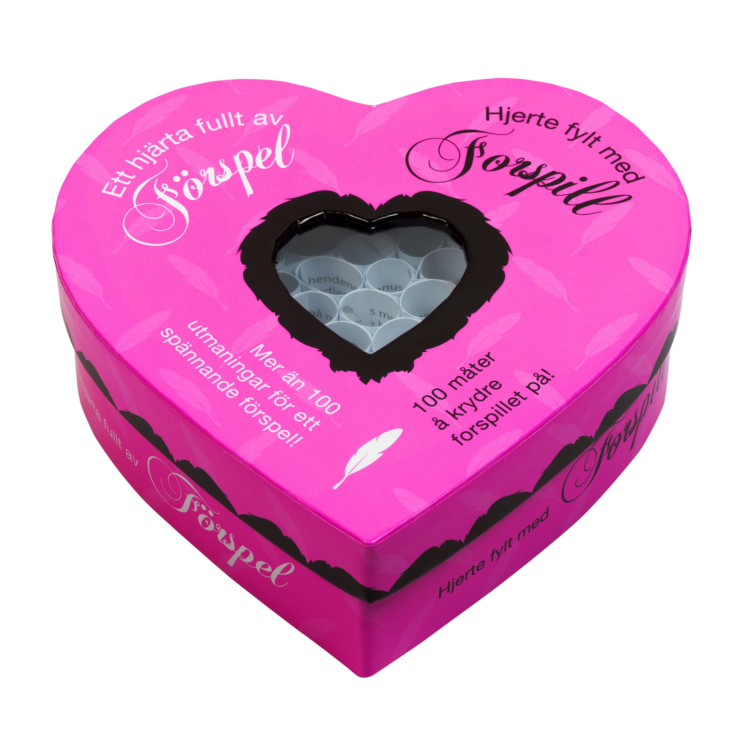 De 100 inspirerande utmaningarna i denna hj¤rtformade lҐda kommer ta ert f¶rspel till nya h¶ jder: Sp¤nnande, sensuellt och det kommer fҐ er bҐda att längta efter mer. Ett sensuellt f¶rspel fҐr er inte bara i r¤tt st¤mning, utan hj¤lper er att slappna av. Den dagliga stressen gl¶ms bort och lҐter er fokusera pҐ varandra och pҐ varandras kroppar. Unders¶kningar visar, att sannolikheten f¶r tillfredsst¤llande sex G¶kar med l¤ngre f¶rspel. Det ger er inte bara st¶rre njutning idag, utan g¶r G¤ven ert n¤sta sexuella m¶te mer intimt och intensivt.