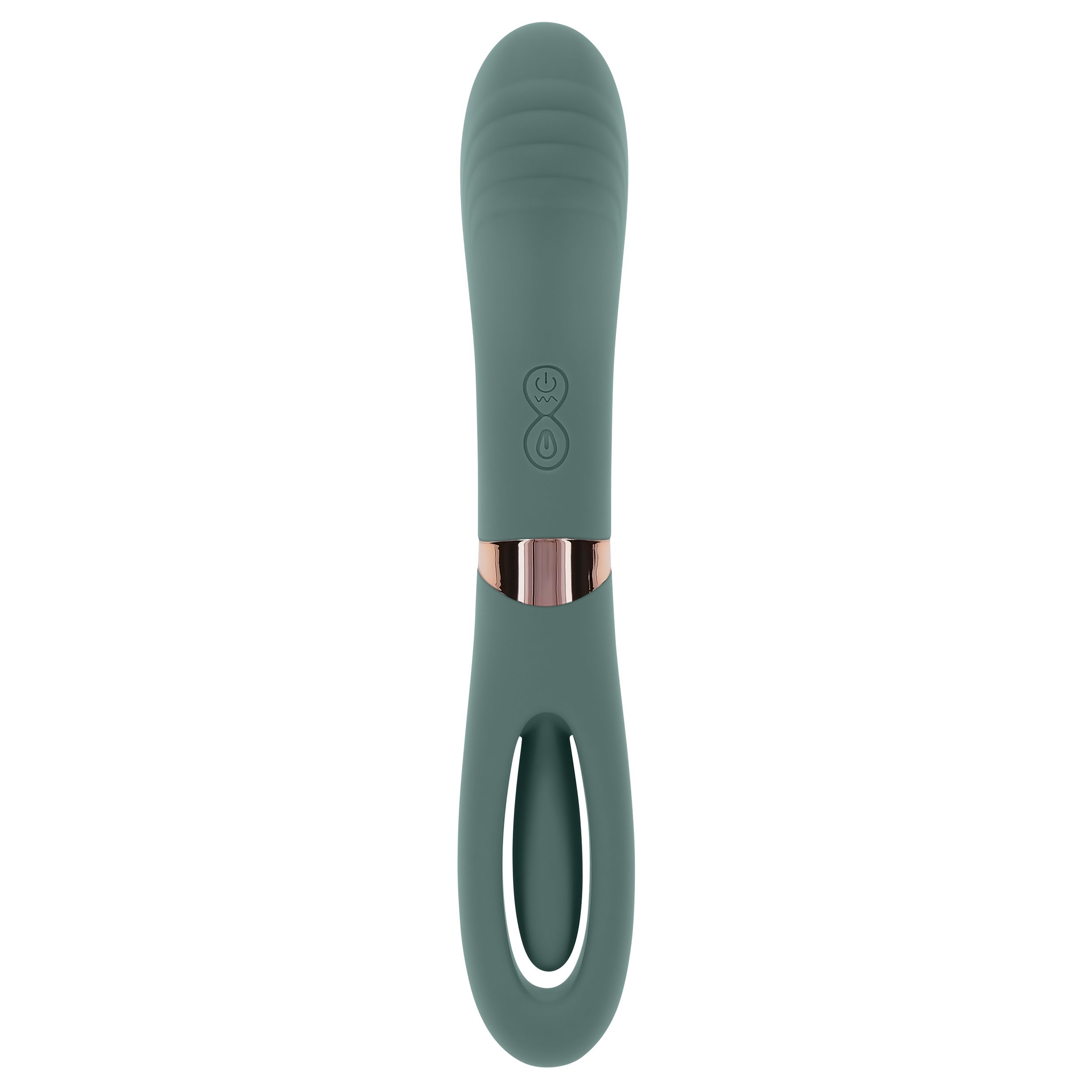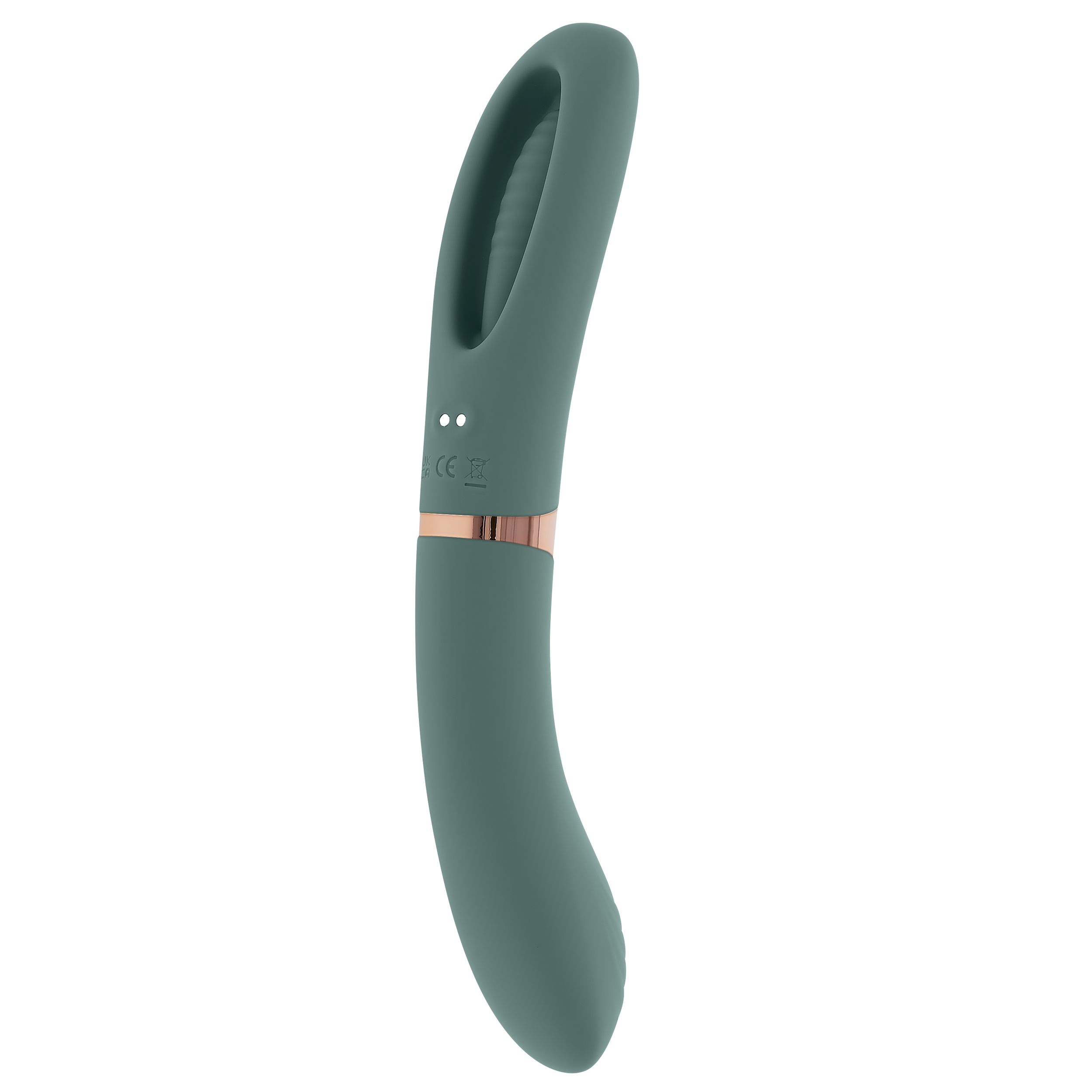 Два щастливи края в едно незабравимо Chick Flick! Това изживяване с два края е с меко извита оребрена част от едната страна, проектирана да достигне без усилие G-точката, докато другият край предлага вълнуващо усещане, за което най-много копнеете. Подсилете вибрациите и скоростта на движение с независимо контролирани мотори и открийте дълбокото удовлетворение от добре изработената двойна функция.