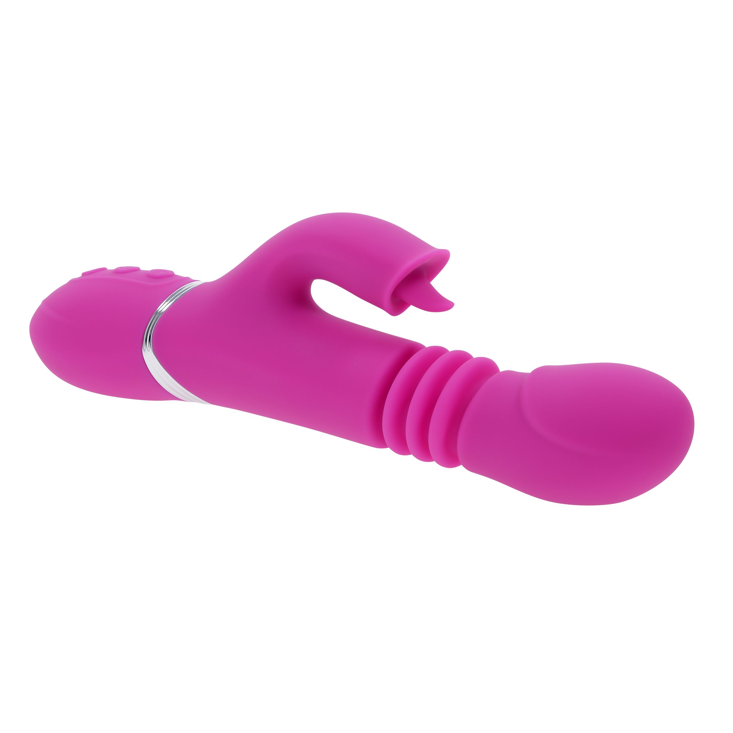 Изпитайте множество усещания едновременно със заоблена, извита, обемна глава, която се върти и усуква върху вибриращ, тласкат ствол. Хванете здраво текстурираната дръжка, докато усилвате вибрациите в гъвкавия стимулатор с език, предназначен да ви подиви и да изпълни фантазиите ви. Почиствайте лесно след употреба с препарат за почистване на играчки и топла вода.