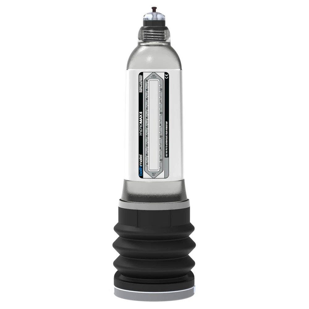 Прозрачна водна пенис помпа Hydomax8 от Bathmate за всички мъже, които искат трайно увеличаване на размера на пениса, качеството на ерекцията и издръжливостта. Лесен за използване с вода за нежна, но изключително ефективна тренировка с хидровакуум. Отпуснете се под душа или ваната!