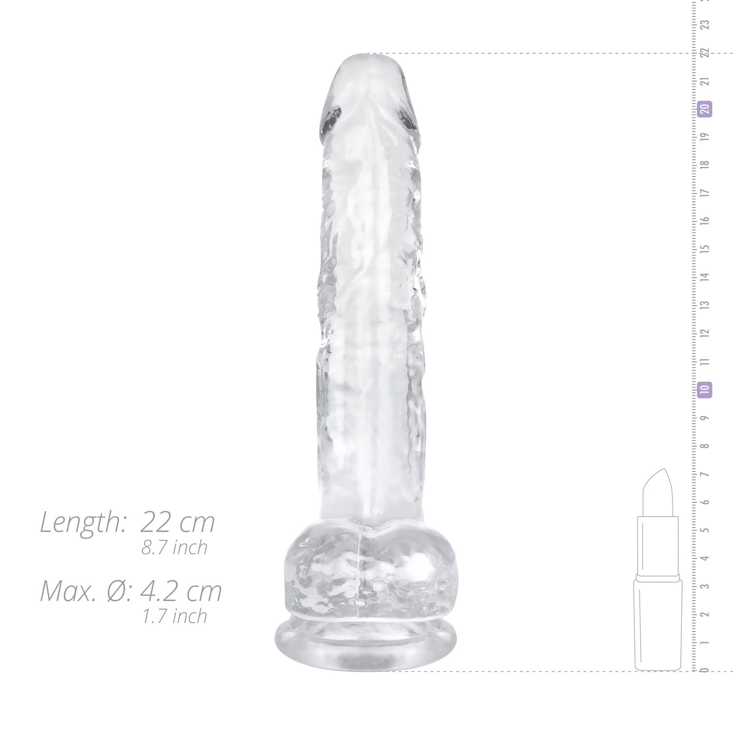 Този прозрачен дилдо е изработен от меко желе и се отличава със супер задоволителни характеристики! Удълженият ствол от 19 см е идеален за дълбоко анално или вагинално проникване, а текстурираните топчета и изпъкналият връх ви осигуряват реалистично и приятно изживяване. Просто нанесете любимия си лубрикант и оставете фантазията си да се развихри!