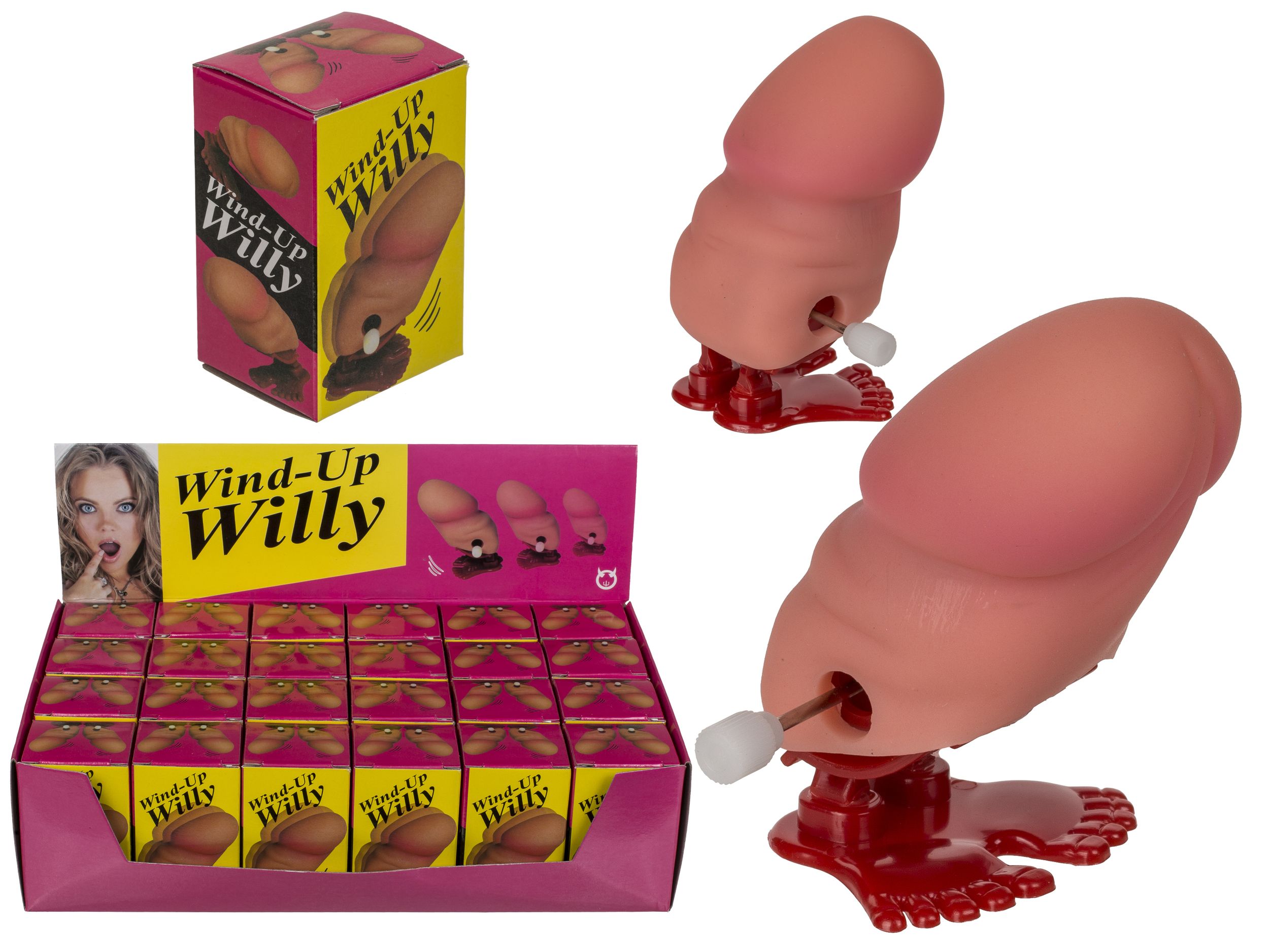 Този забавен пенис е с ръчен механизъм за навиване за вълнуваща изненада: просто навийте играчката и я пуснете, за да я видите как се повдига. Идеален за подарък или за партита.
