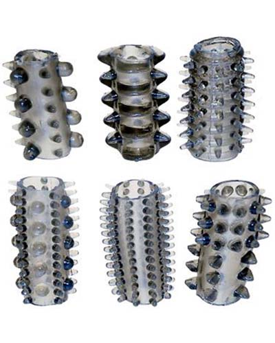 Комплект от 6 бр. пенис удебелители с различни оребрения. Повишават чувствителността на вагината и увеличават удоволтсвието при половия акт.