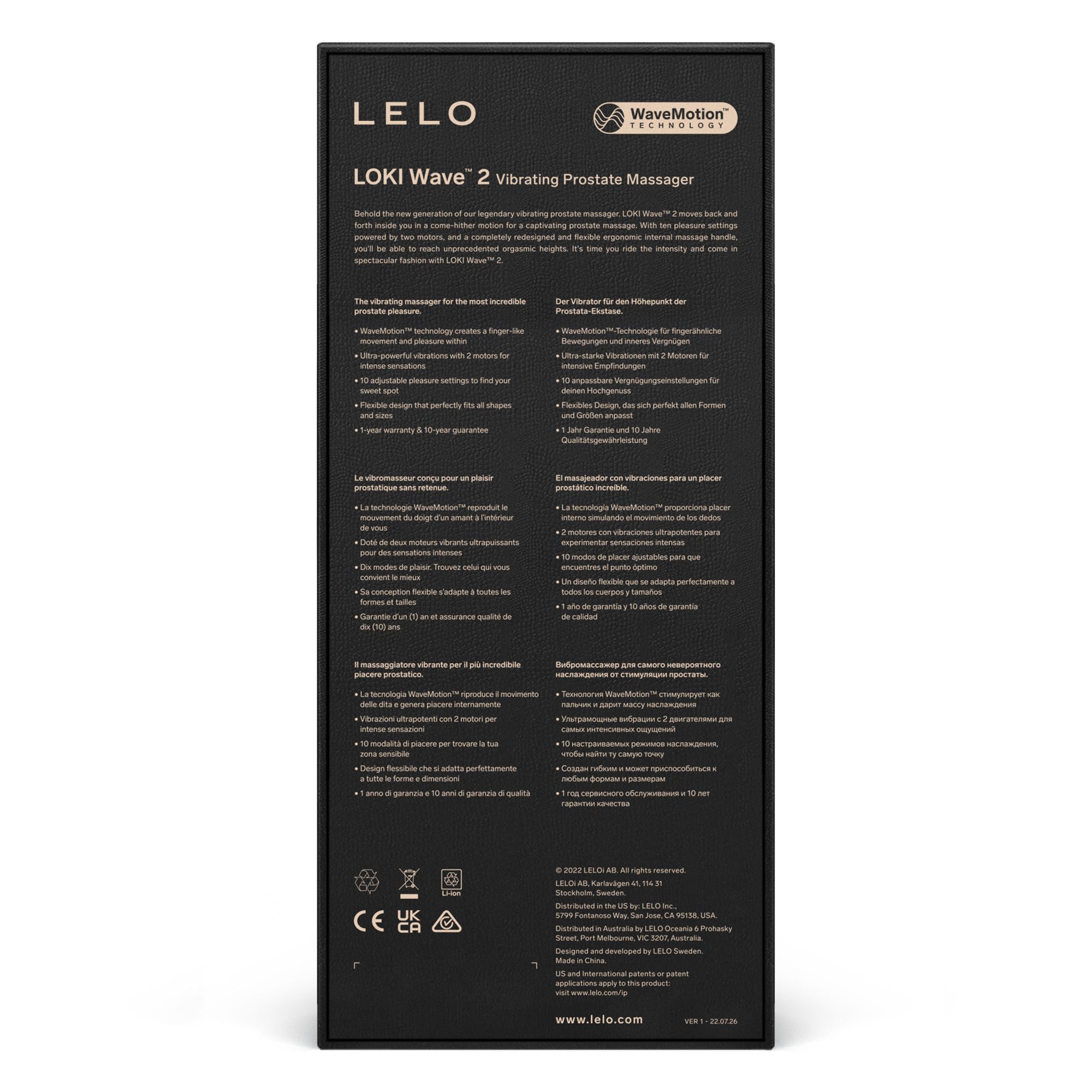 LOKI Wave 2 е мощен простатен стимулатор с 12 настройки за удоволствие, идеален за смела игра, соло или като двойка. Устройството разполага с характерната технология WaveMotion на LELO, за да осигури дълбок и ефектен масаж като с пръст, докато по-малкият връх едновременно стимулира перинеума. LOKI Wave 2 е напълно водоустойчив и покрит с висококачествен безопасен за тялото силикон, което прави най-интензивните ви оргазмени мечти реалност с лекота.