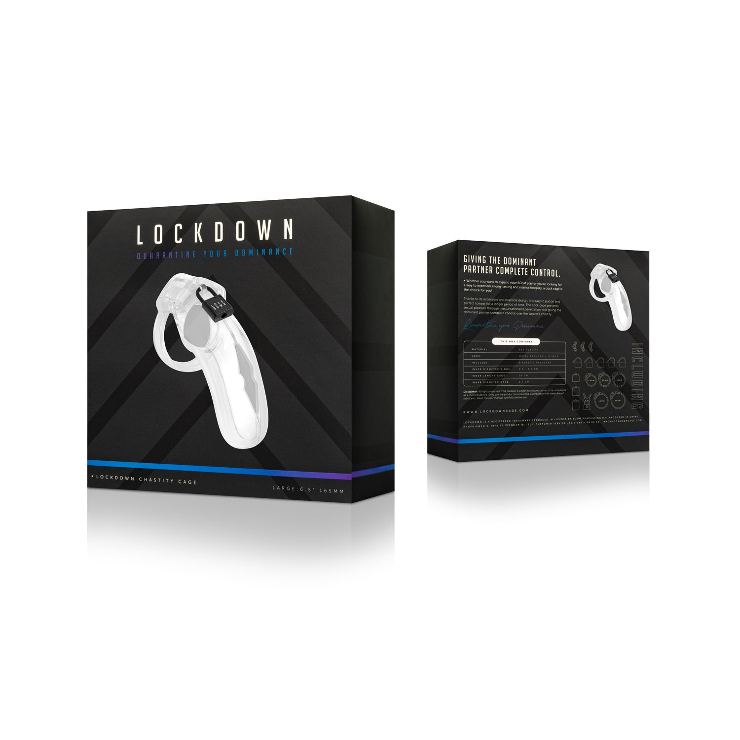 Готови ли сте за вълнуващо изживяване с робство? Тази клетка за целомъдрие Lockdown прави невъзможно за носещия я да получи ерекция. Прозрачната клетка все още ви позволява да гледате през нея. Клетката може дори да се носи няколко дни подред за интензивна прелюдия. Отворът отпред позволява на носещия да уринира, без да я сваля. Този страхотен комплект се предлага с 5 пръстена с различни размери за перфектно прилягане (4,5 – 6,5 см). Съдържа също метален катинар с 2 ключа и 5 пластмасови номерирани катинара. Пластмасовите ключалки могат да бъдат отрязани от клетката с ножица след употреба. Уникалните номера на всеки катинар гарантират, че носещият не може тайно да премахне клетката за целомъдрие и да постави нова след това, без да бъде хванат! Забележка: свалете клетката за целомъдрие преди лягане, за да предотвратите наранявания и дискомфорт.