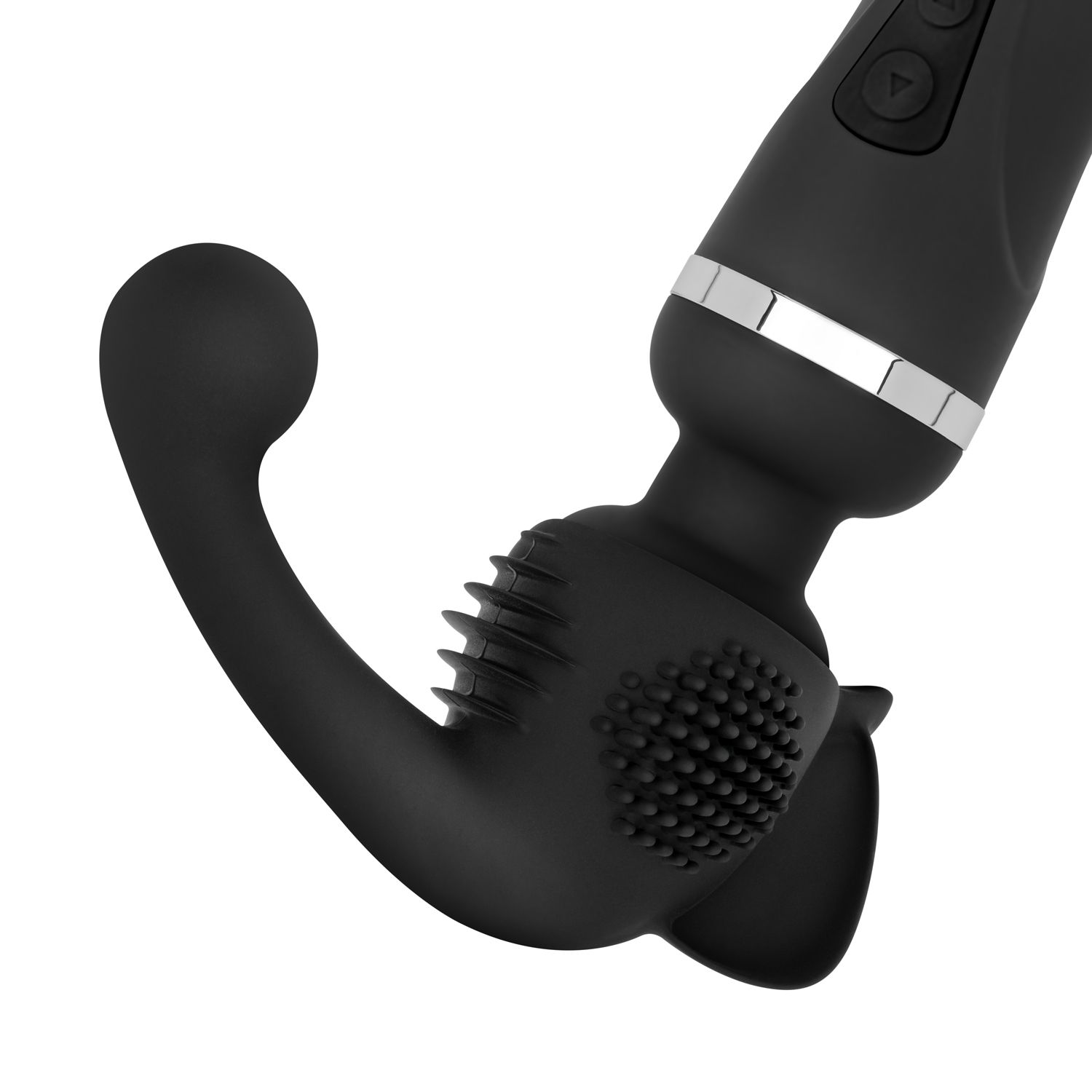Женската приставка има рамо за двоен стимулатор на G-точката, четка за клитора и масажор за вулва. Рамото за G-точка е идеалният баланс между гъвкавост, твърдост и извивка. Четката за клитора има гъвкави издатини, които ще изпратят тръпки по гръбнака ви, а масажорът за вулва е идеален за тези, които предпочитат широка стимулация.