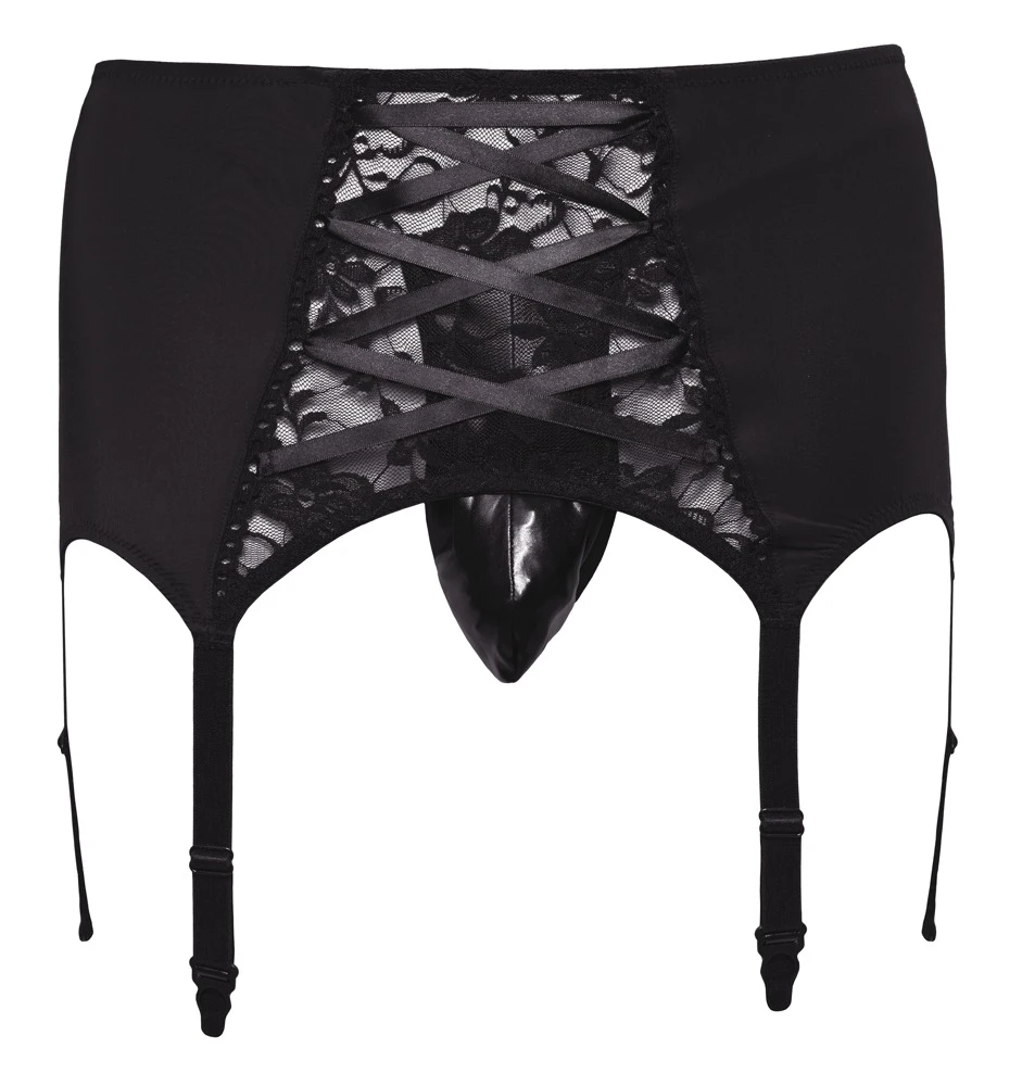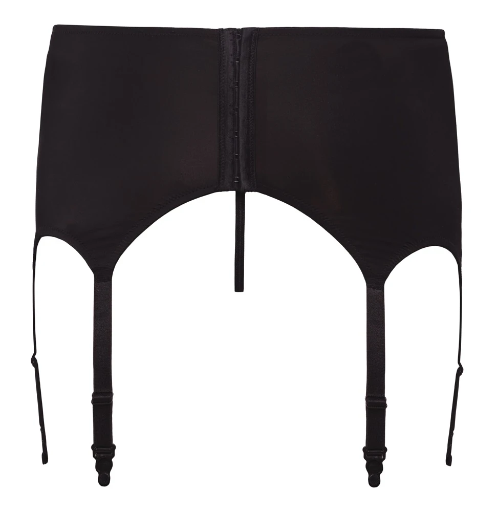 Широкият колан за тиранти от Svenjoyment е изработен от мек микрофибър. Отпред има дантелена вложка, върху която има декоративна връзка. Освен това е еластична за удобно прилягане. Отзад има закопчалка с кука, която има два реда куки.