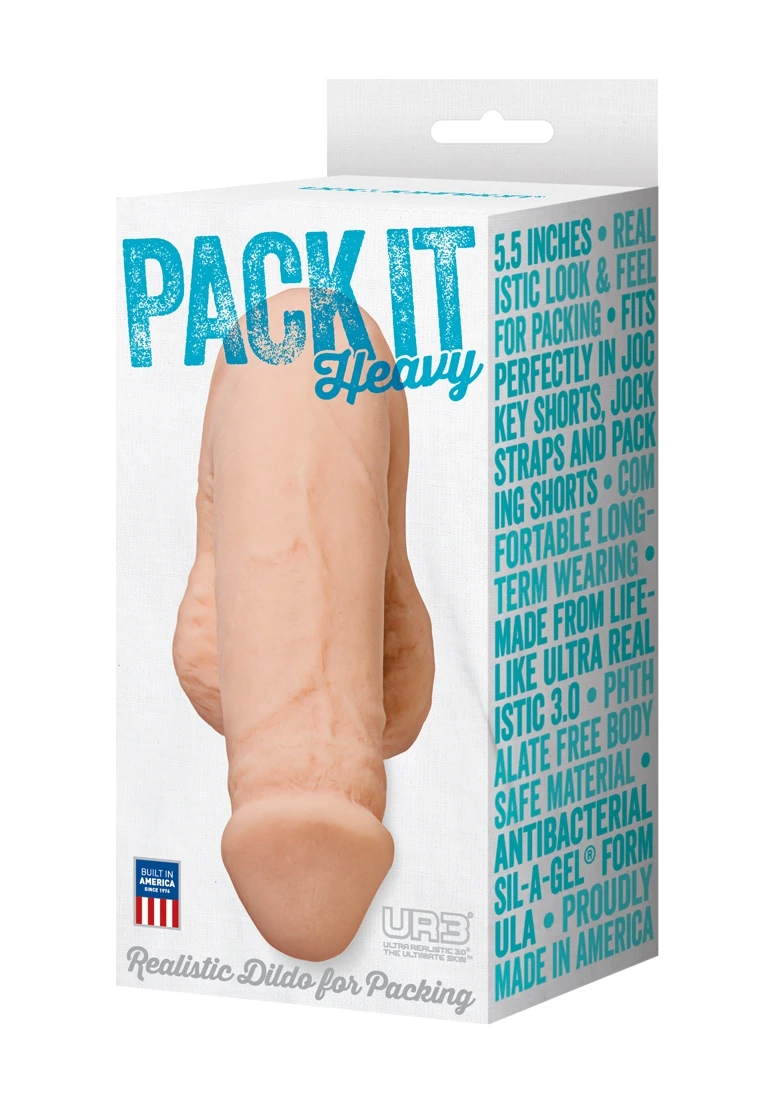 Пригответе се за пълни опаковки! Специално проектиран за удобно носене през целия ден, Pack It Heavy пасва перфектно на жокейски шорти, презрамки и къси панталони. Отличаващ се с автентичен външен вид и усещане, допълнен с детайли с жилки и плюшени топчета, този солиден, но мек UR3® пакет е 5,5″ дълъг, с 1,5″ ширина. Предлага се в бяло, кафяво и черно. Изработен от безопасен за тялото материал без фталат с антибактериалната формула Sil-A-Gel на Doc Johnson. Спецификации: