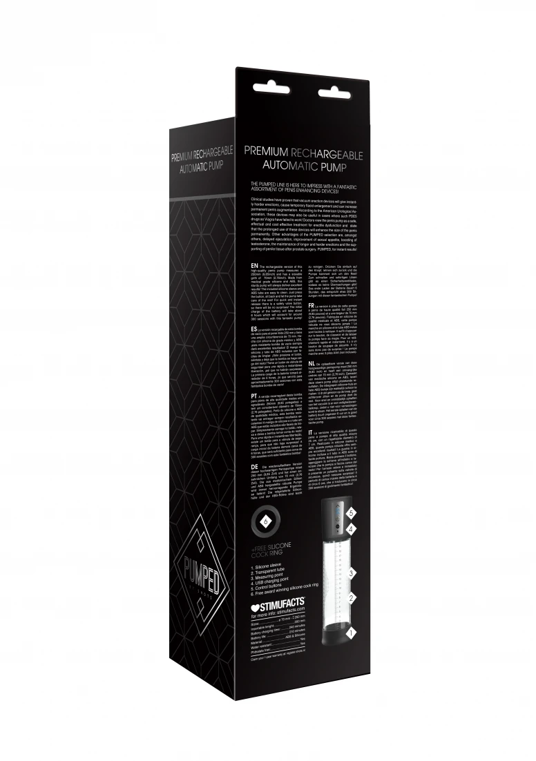 Презареждащата се версия на тази висококачествена помпа за пенис е с размери 290 мм и има значителна обиколка от 70 мм. Изработена от медицински силикон и ABS, тази здрава помпа винаги ще предоставя отлични резултати! Включеният силиконов ръкав и ABS тръбата се почистват лесно. Просто натиснете бутона, отпуснете се и оставете помпата да се погрижи за останалото! За бързо и незабавно освобождаване има бутон за предпазен клапан, така че няма да има изненади! Първоначалното зареждане на батерията ще отнеме около 6 часа, което ще отнеме около 300 сесии с тази фантастична помпа!