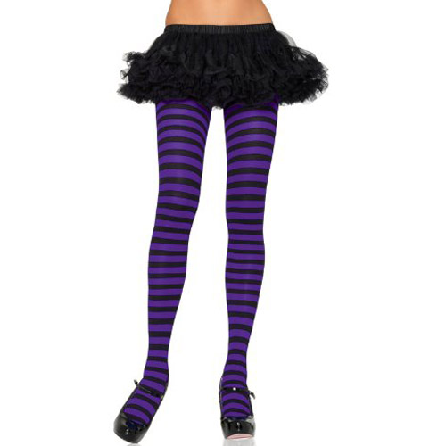 Бъдете неотразима в къса пола или еротичен костюм и този смел, предизвикателен чорапогащник на черни и сини ивици. Приковете всички погледи в краката си!