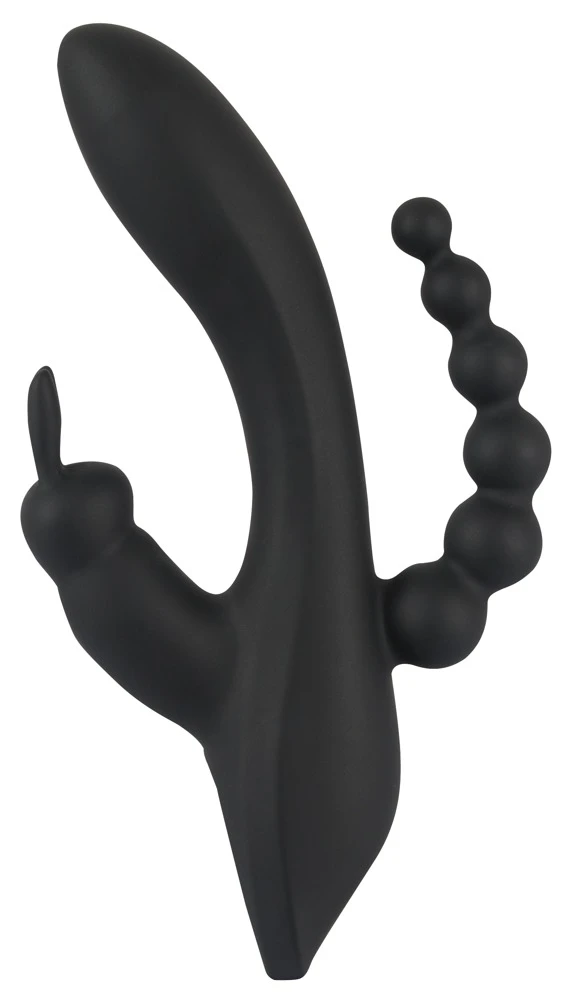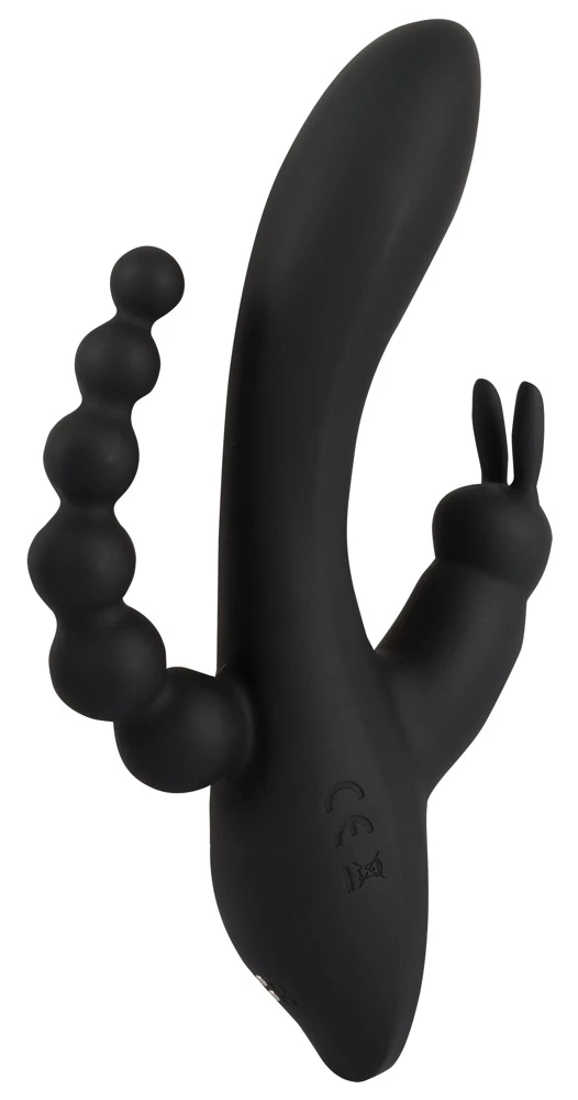 Вибратор с клиторален стимулатор в дизайн на заек и анален стимулатор в дизайн на анални перли. 7 режима на вибрация в извития ствол с върха на G-точката и 3 режима на вибрация в клиторния стимулатор. Режимите на вибрация могат да се контролират отделно с натискане на бутон. Универсалният доставящ удоволствие е покрит с мека на допир текстура и се чувства страхотно върху кожата по време на удоволствие и игра. Вибраторът също е водоустойчив, което означава, че можете да му се наслаждавате във ваната и под душа. Може да се презарежда с USB кабела в комплекта.