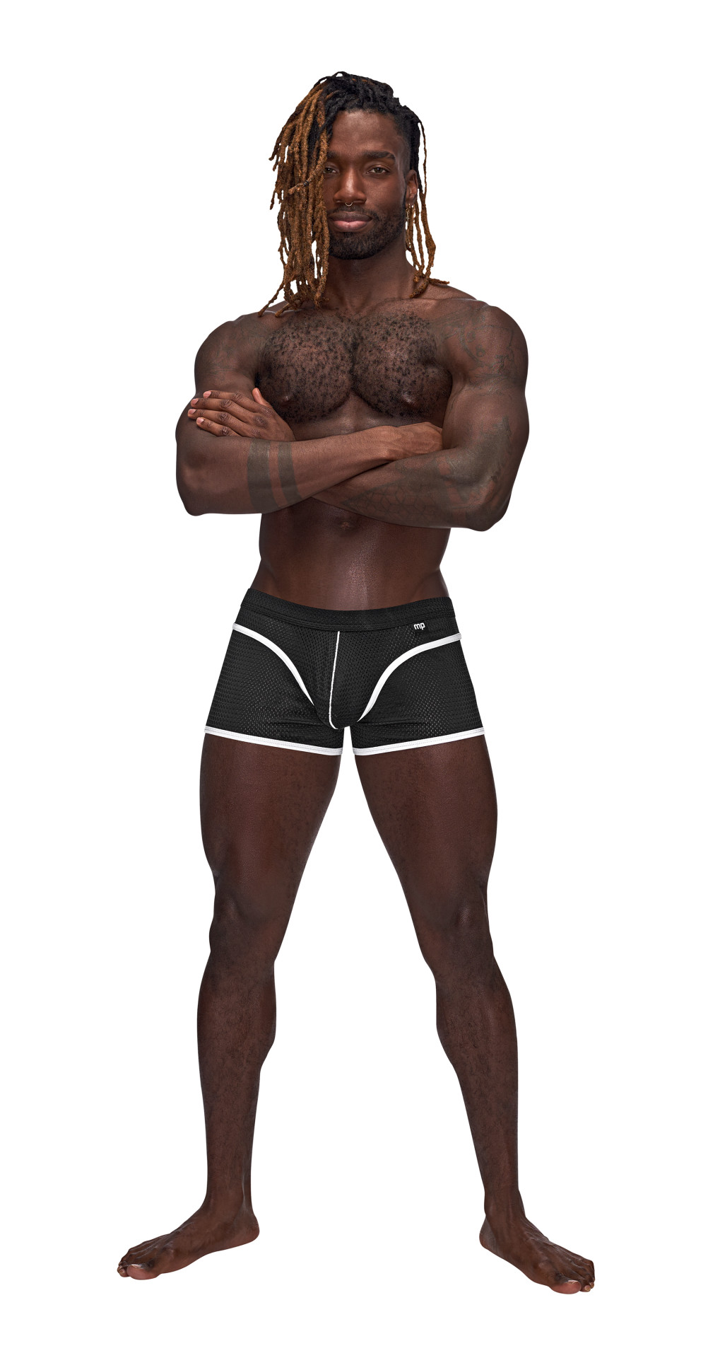 От колекцията Sport Mesh на Male Power, Sport Mini Short се отличава с покрита с плат колан с лого MP етикет. Плюшени еластанови спортни ленти подчертават предната, задната част и краката