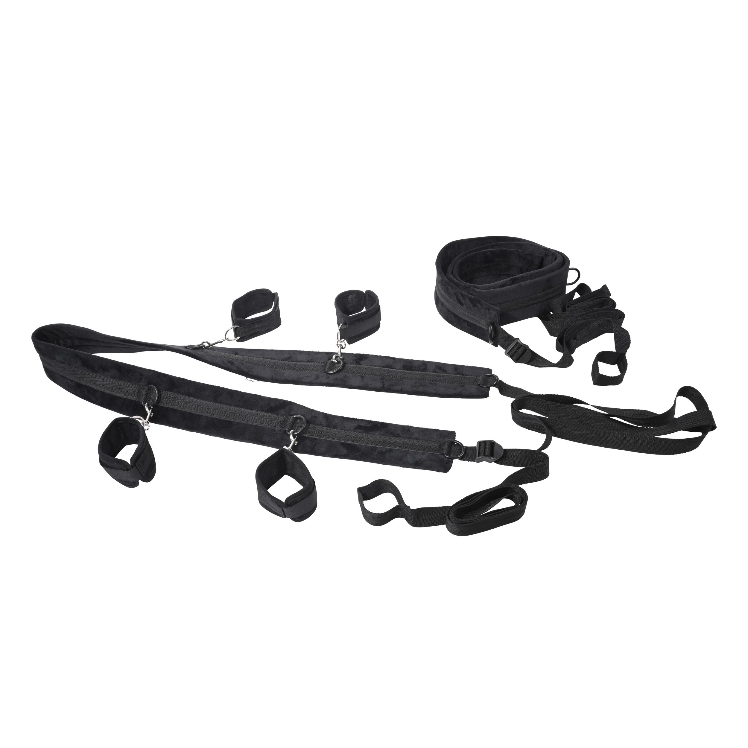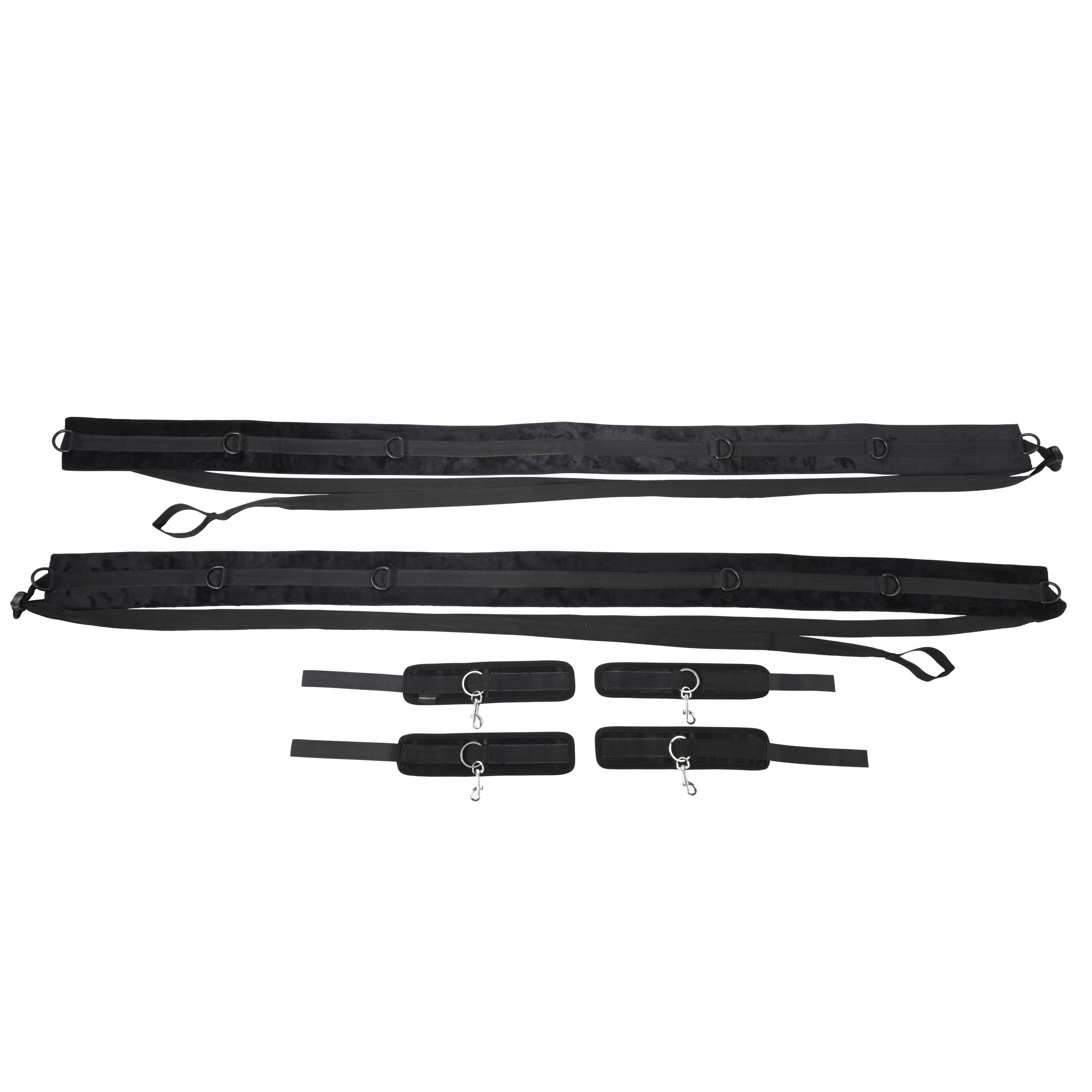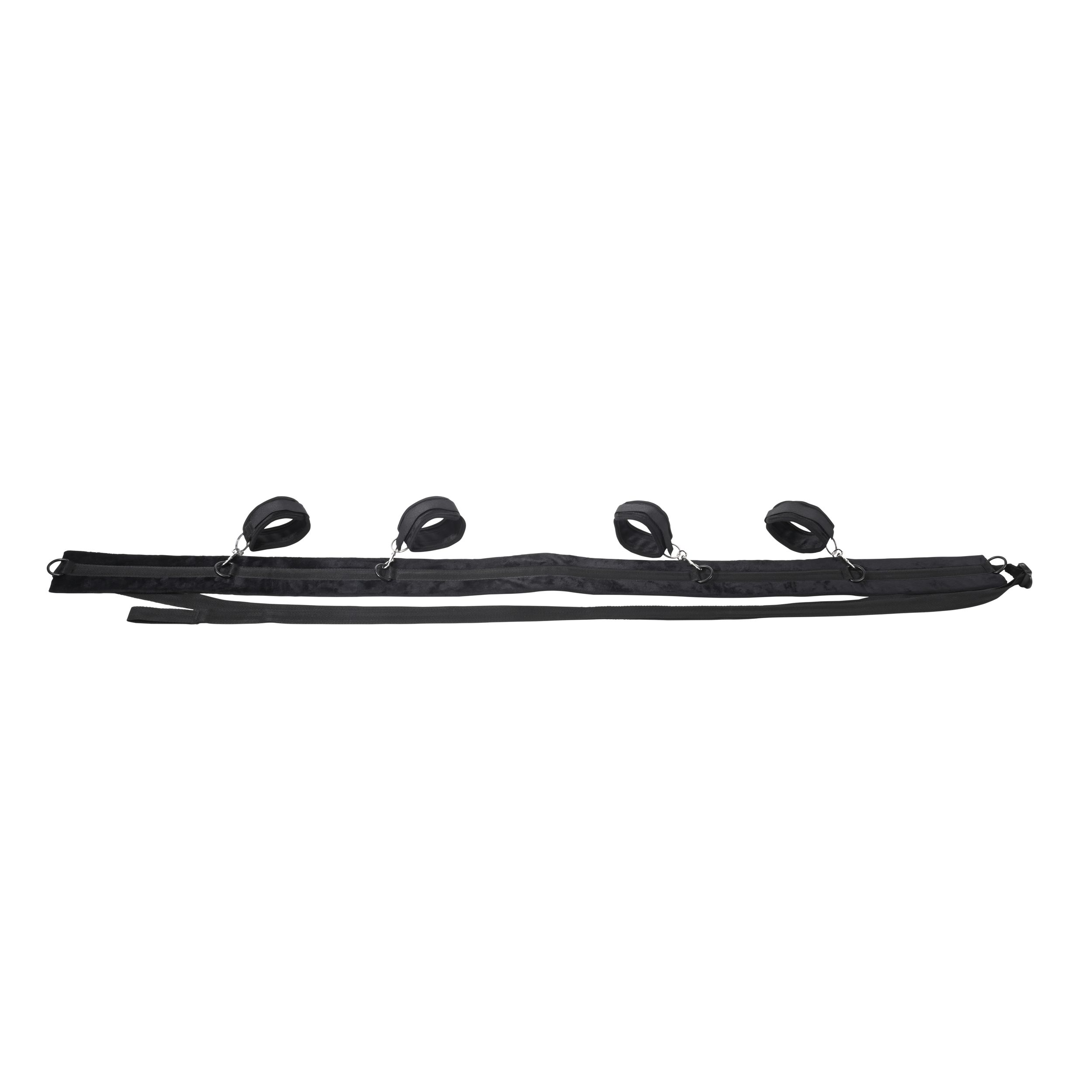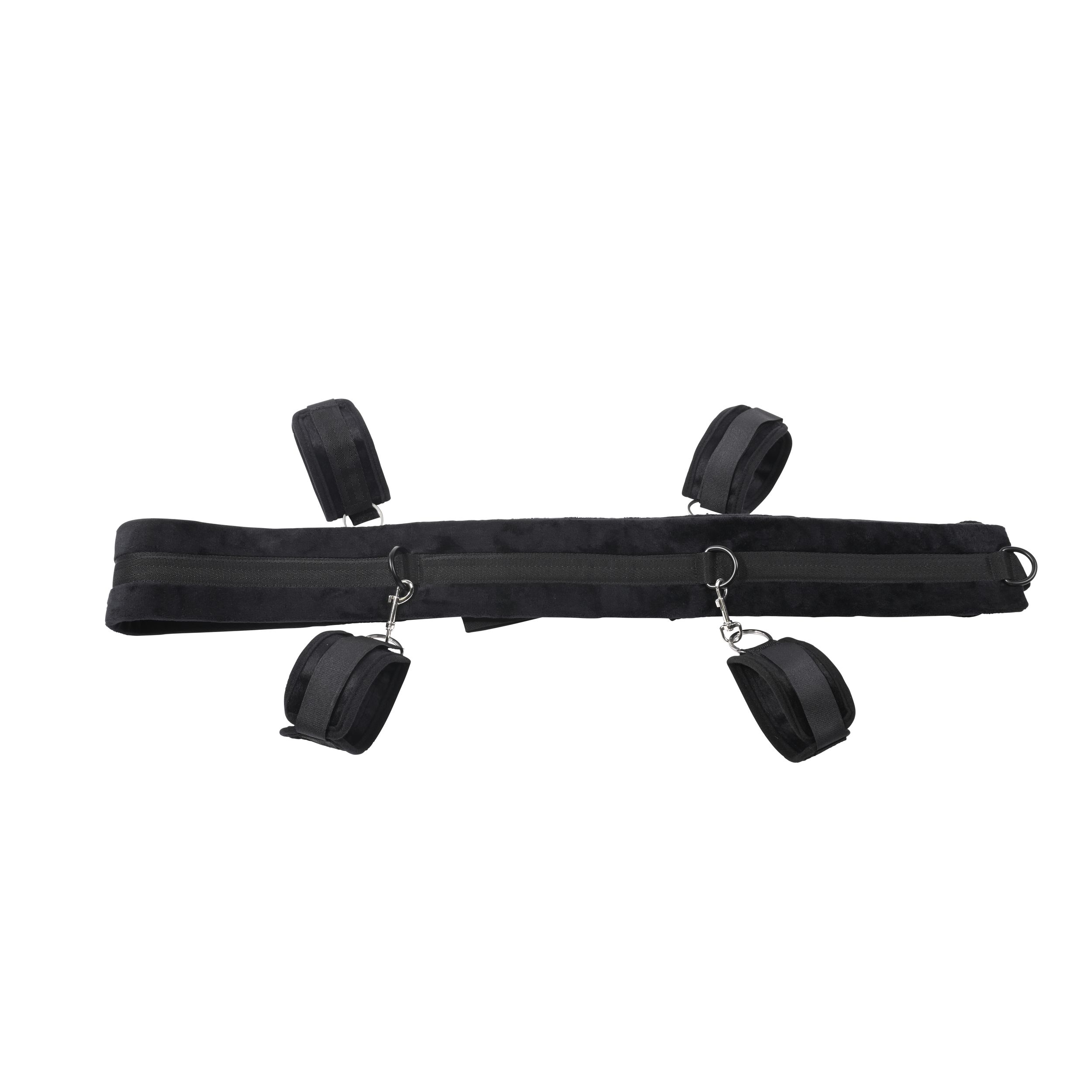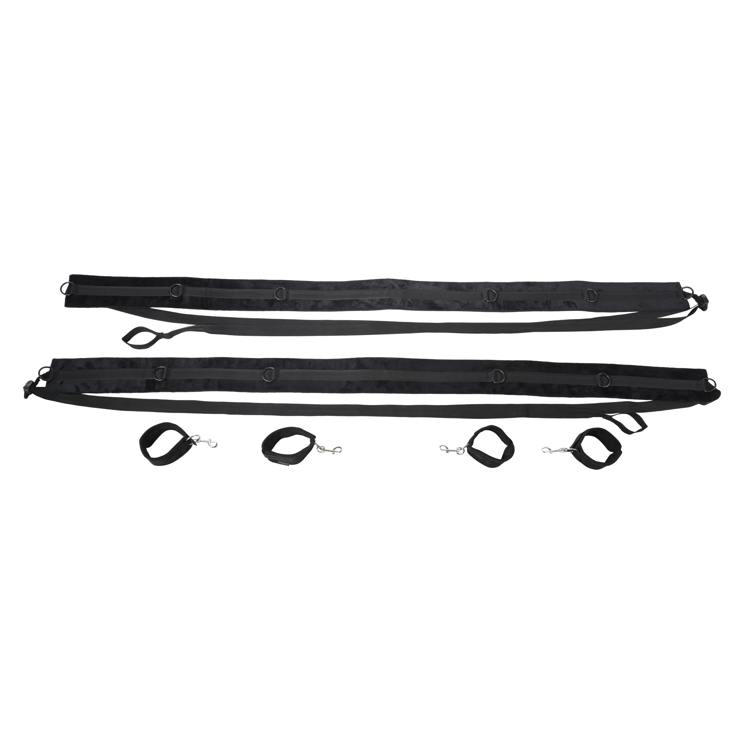 Изпитайте върховна свобода и контрол със системата за обвързване SPORTSHEETS No Matter Where. Този ултрапреносим и регулируем комплект дава на партньора ви пълен контрол, докато сте обвързани и разперени, или регулирайте каишките за вълнуващо обвързване в изправено положение до врата. С близо 3 метра регулируеми каишки и четири здрави белезника, всеки свързан с шест D-пръстена на каишка, можете да изследвате широка гама от еротични пози и фантазии. Изработена от издръжлив полиестер, POM пластмаса, XPE пяна, цинкова сплав, полипропилен и желязна сплав за безопасно и комфортно изживяване.