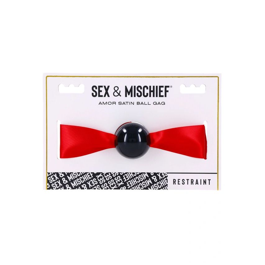 Изгубете се в искрата на желанието в очите на любимия си, докато го оставяте безмълвен със сатенената топка-кърпа Amor. Поемете контрол над ситуацията в луксозна тишина, докато всеки стон от удоволствие е приглушен от комфорт. Изживейте всеки интимен момент с чувствено докосване – от сатенената панделка, спускаща се по тялото му, до еротичното усещане за дъха ви върху врата му, докато шепнете сладки неща, докато завързвате плътно крпа. Характеристики: Гъвкава червена сатенена панделка, каишка, мека черна топка-кърпа с панделка, през която се преминава, червена панделка с дължина 46 инча