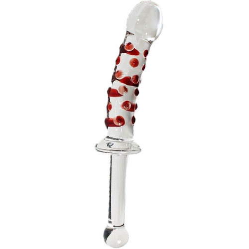 С два различни края за неповторимо удоволствие, единия (вагиналния) край е покрит с релефни, изпъкнали, червени точки и с реалистична кръгла глава, докато другия (аналния) край може да се използва като дръжка или като гладко дилдо за анална или вагинална игра. Това стъклено дилдо ще ви донесе неповторими изживявания!