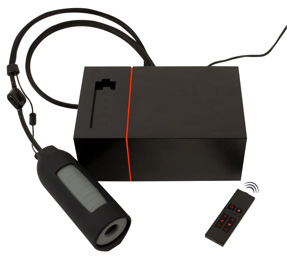 Приятната нова затопляща функция прави стимулацията на свирка още по-реалистична. 10-те режима на засмукване и 10-те режима на вибрация в 6 интензитета могат лесно да се контролират чрез дистанционното управление (обхват: 5 метра). Дистанционното управление може да се постави на място в устройството, когато не се използва, за да може да се съхранява безопасно. Това пространство е и интегрираното място за зареждане, където може да се зарежда дистанционното управление.