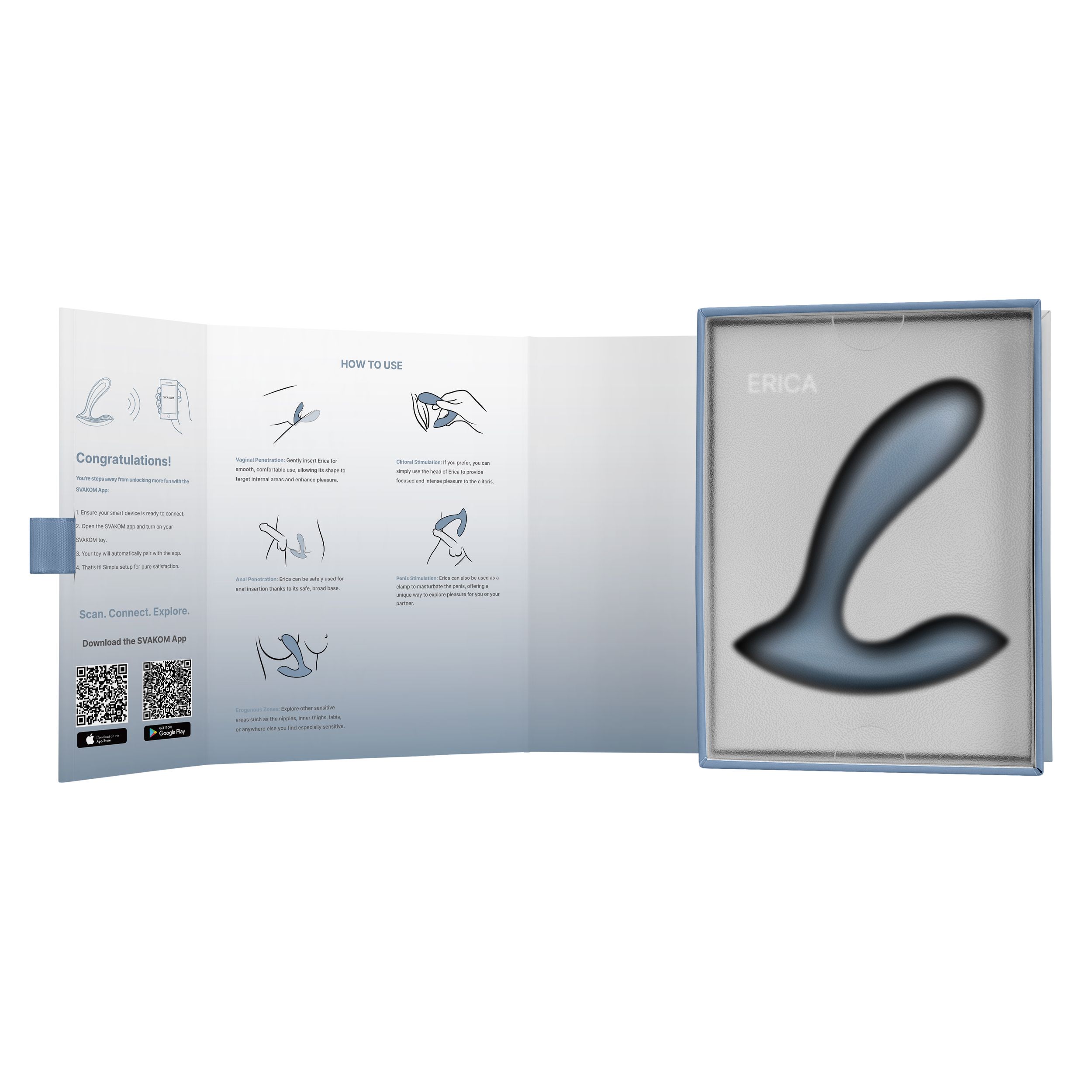 Наслаждавайте се в движение. Ерика разполага с два мощни мотора за вътрешна и външна стимулация. С пълен APP контрол, използвайте SVAKOM APP, за да вдъхнете удовлетворение, където и да сте – или предайте контрола.