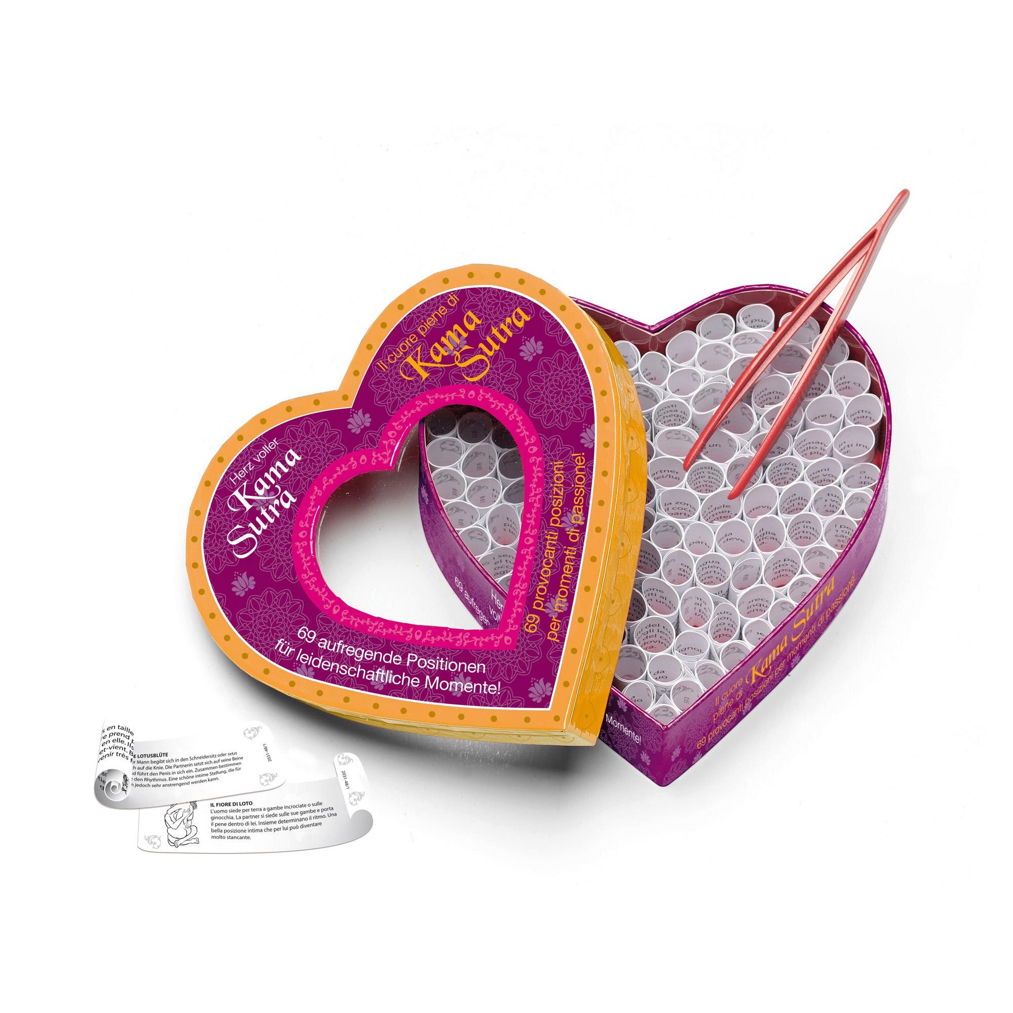 Добавете вълнуващ обрат към любовния си живот с Камасутра Сърце от Tease & Please. В елегантната кутия с форма на сърце ще намерите 69 навити банкноти, всяка от които разкрива чувствена поза, вдъхновена от древната индийска Камасутра. Оставете съдбата да реши: дали ще бъде Тронът на Богинята, Лодката на Любовта или Предаността? Тази игра насърчава игривото взаимодействие, творческите открития и по-дълбоката връзка. Със своя компактен формат и двуезично съдържание (немски и италиански), тя е и перфектен подарък за авантюристични двойки. Палав жест, изпълнен със страст и удоволствие.