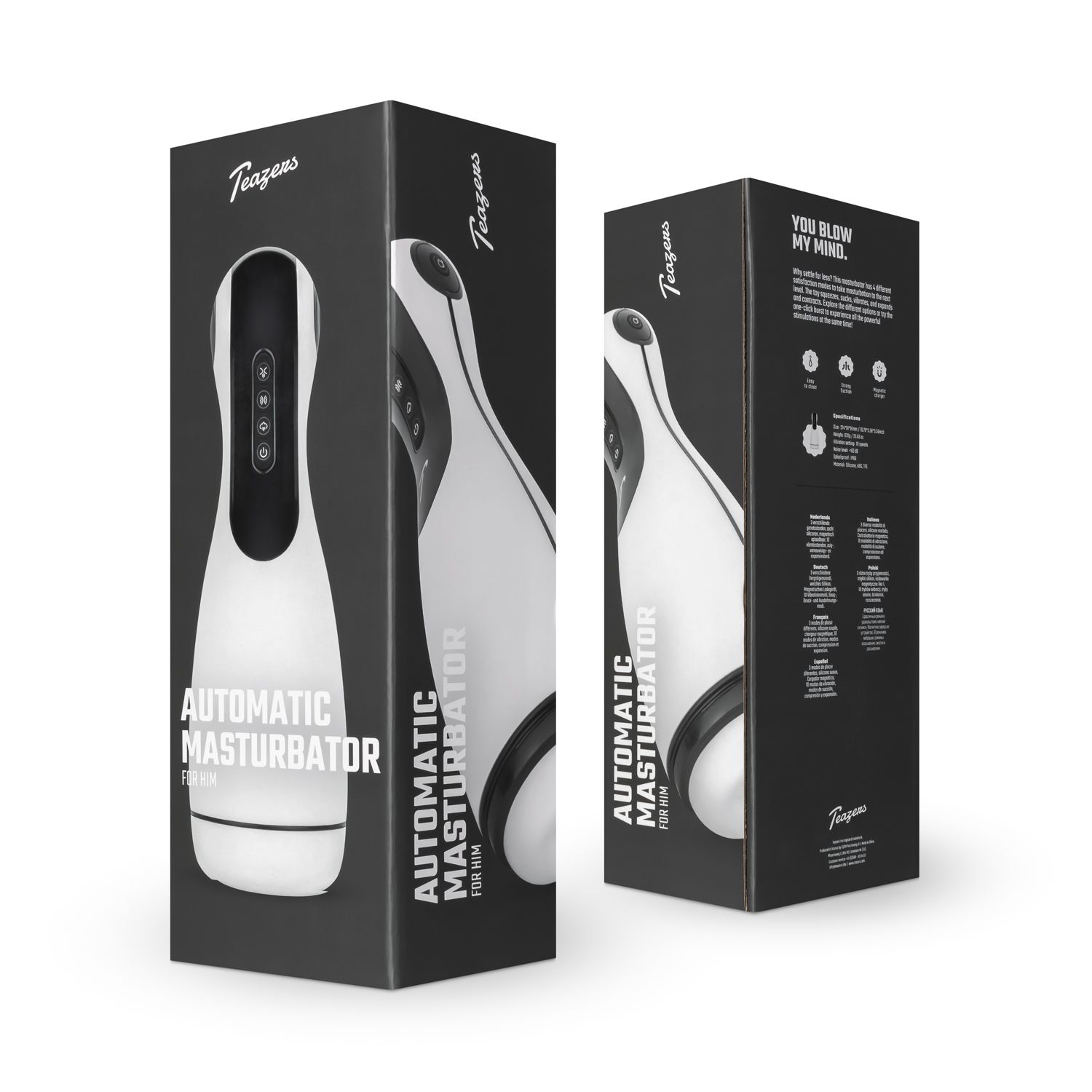 Този мастурбатор има не 1, а 4 различни режима на удоволствие. Играчката може да стиска, смуче, вибрира и се разширява. Различните режими могат да се контролират отделно, но играчката има и бутон за еднократно натискане, където можете да изпитате всички различни режими едновременно. Освен това, мастурбаторът има оребрена и украсена с капси вътрешна част за допълнителна стимулация.