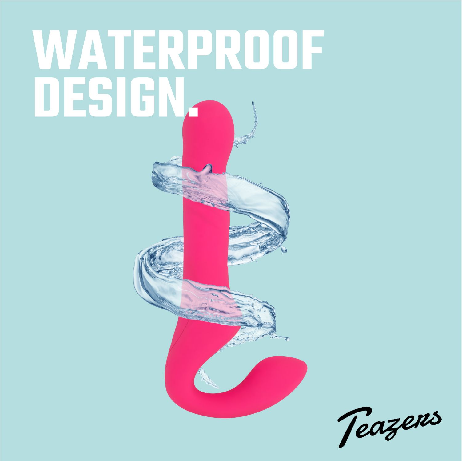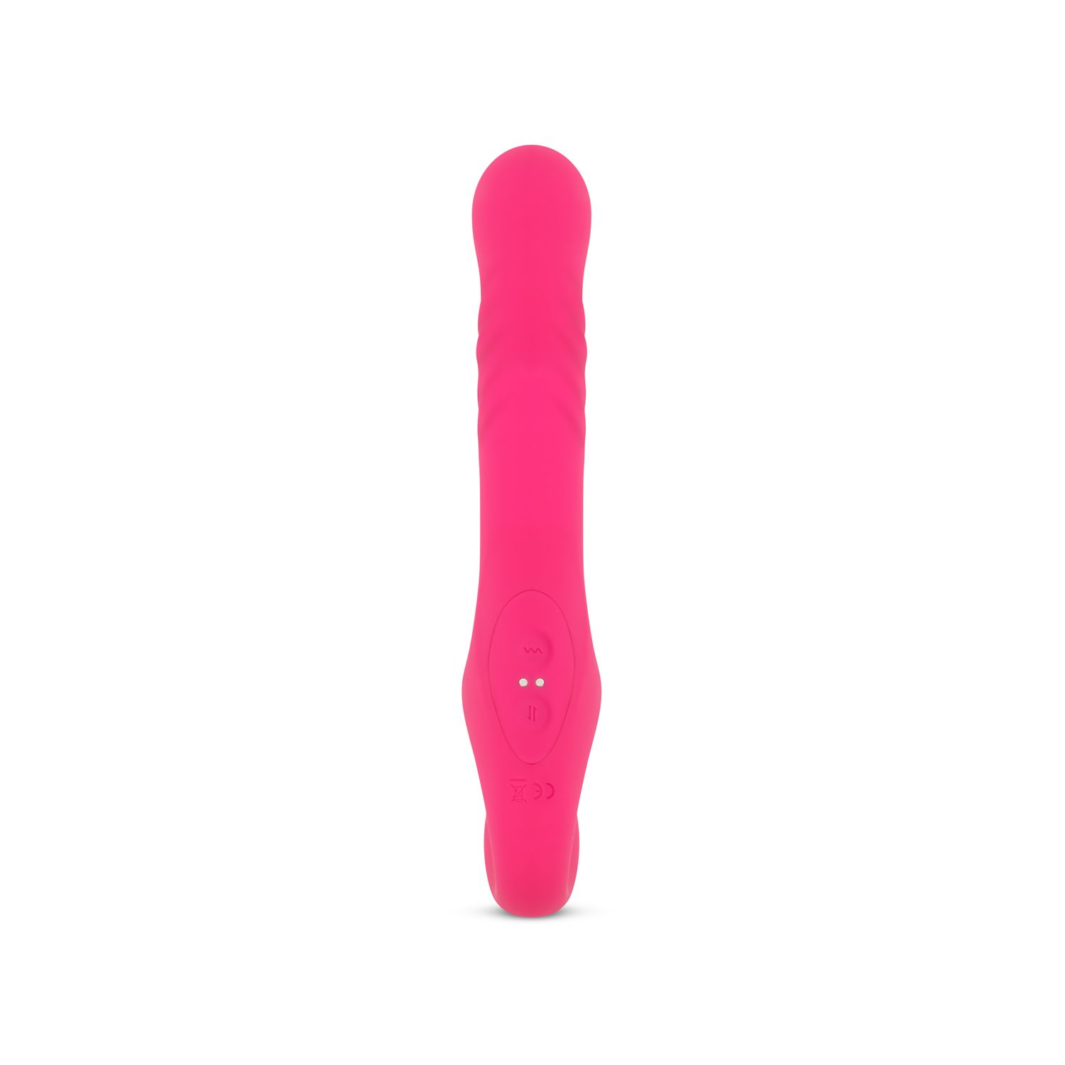 Този вибратор без презрамки от Teazers позволява на двамата партньори да му се наслаждават и може да се носи без колан. Вибраторът е изработен от безопасен за тялото силикон и има 2 края: 1 за жената и 1 за нейния партньор. Ядрото е твърдо, но достатъчно гъвкаво за комфортна анална или вагинална стимулация, а вибраторът остава перфектно на мястото си благодарение на ергономичния си дизайн. 2-та мотора имат не по-малко от 10 настройки за вибрация и 3 режима на тласък, които можете лесно да контролирате с безжичното дистанционно управление. Изберете любимия си, дори във ваната, защото вибраторът е напълно водоустойчив! Просто заредете след употреба с включения USB кабел и почистете с хладка вода и препарат за почистване на играчки.