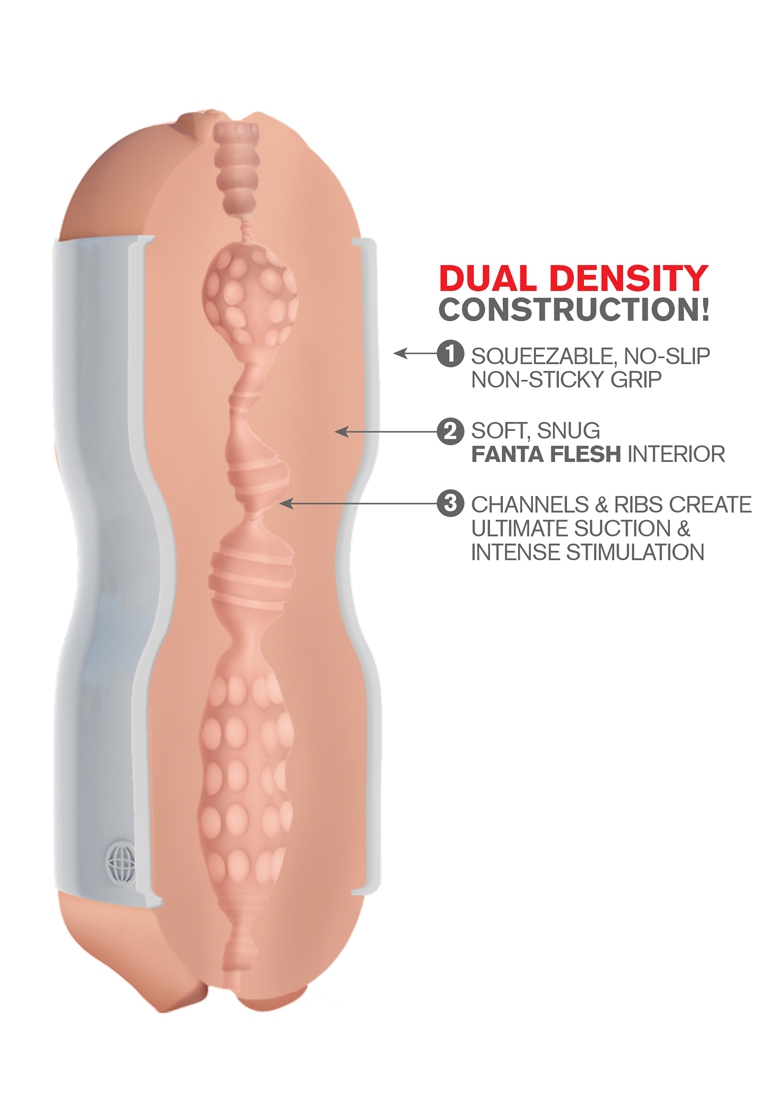Get a TIGHT grip on your next stroking session with this incredible dual-density stroker! Experience the tightest, softest, most realistic masturbator on the market with the Tight Grip Dual-Density Squeezable Stroker. Made from our ultra-lifelike Fanta Flesh on the inside and our specially formulated Tight Grip TPR on the outside, this super soft stroking sleeve features a firm outer construction that allows you to get a tight grip and perfect squeeze every time. The ergonomic shape feels great in your hands and won’t get slippery or sticky, allowing you to get a perfect stroke even when your hands are lubed up!