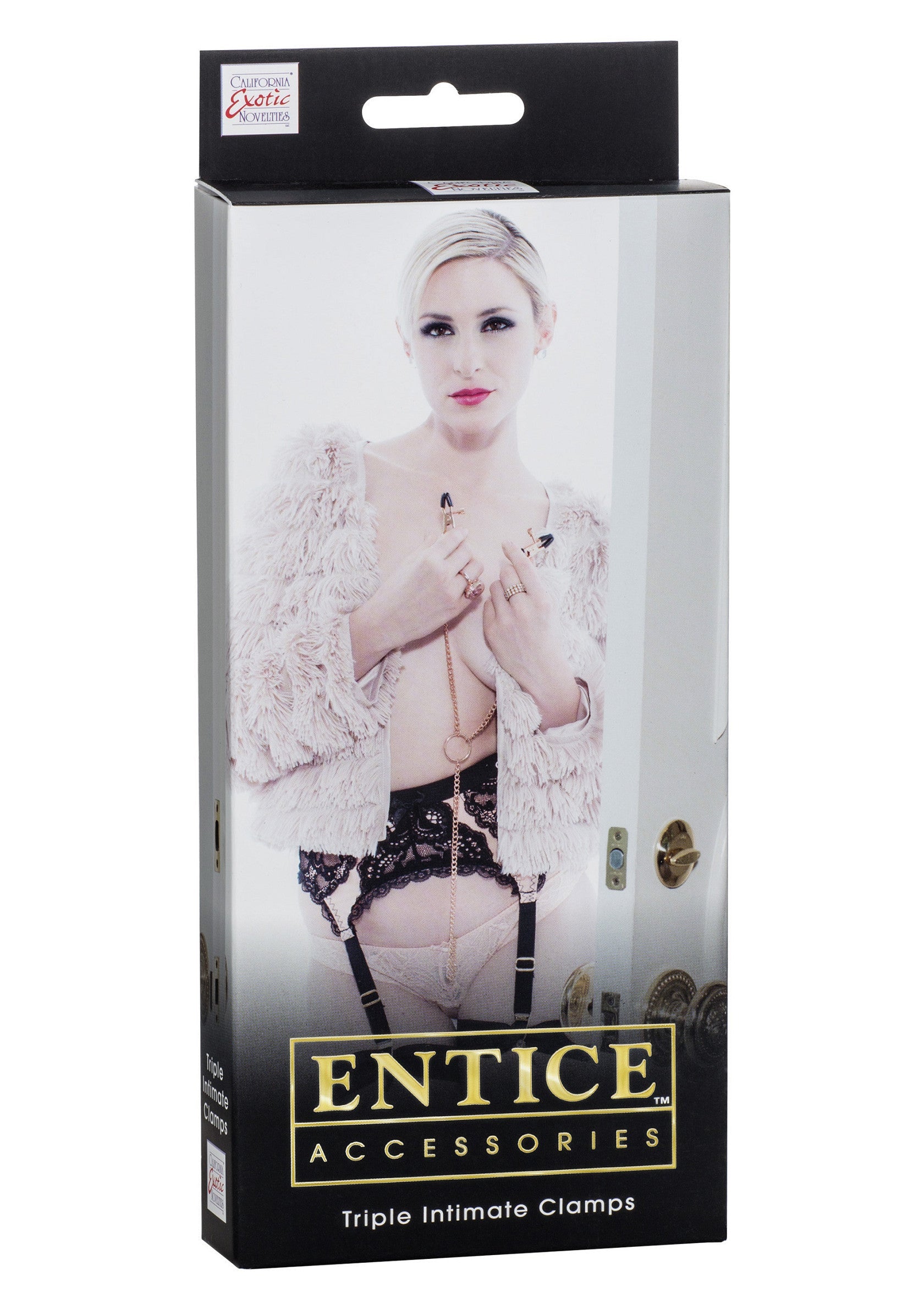 Пригответе се за вълнение с нашите положително примамливи Entice – тройни интимни скоби. Този комплект от 3 многофункционални, напълно регулируеми дизайнерски скоби предлага безкрайни възможности за удоволствие. Здравата висококачествена верижка блести и привлича. Насладете се на прекрасен златен аксесоар, който привлича окото и привлича ръцете. Не потъмняват и не съдържат никел, тези тройни скоби предлагат най-добрия стил на робство. С това лично бижу ще изпитате изключително елегантна и игрива чувственост, за да издигнете фантазиите си на следващото вълнуващо ниво.