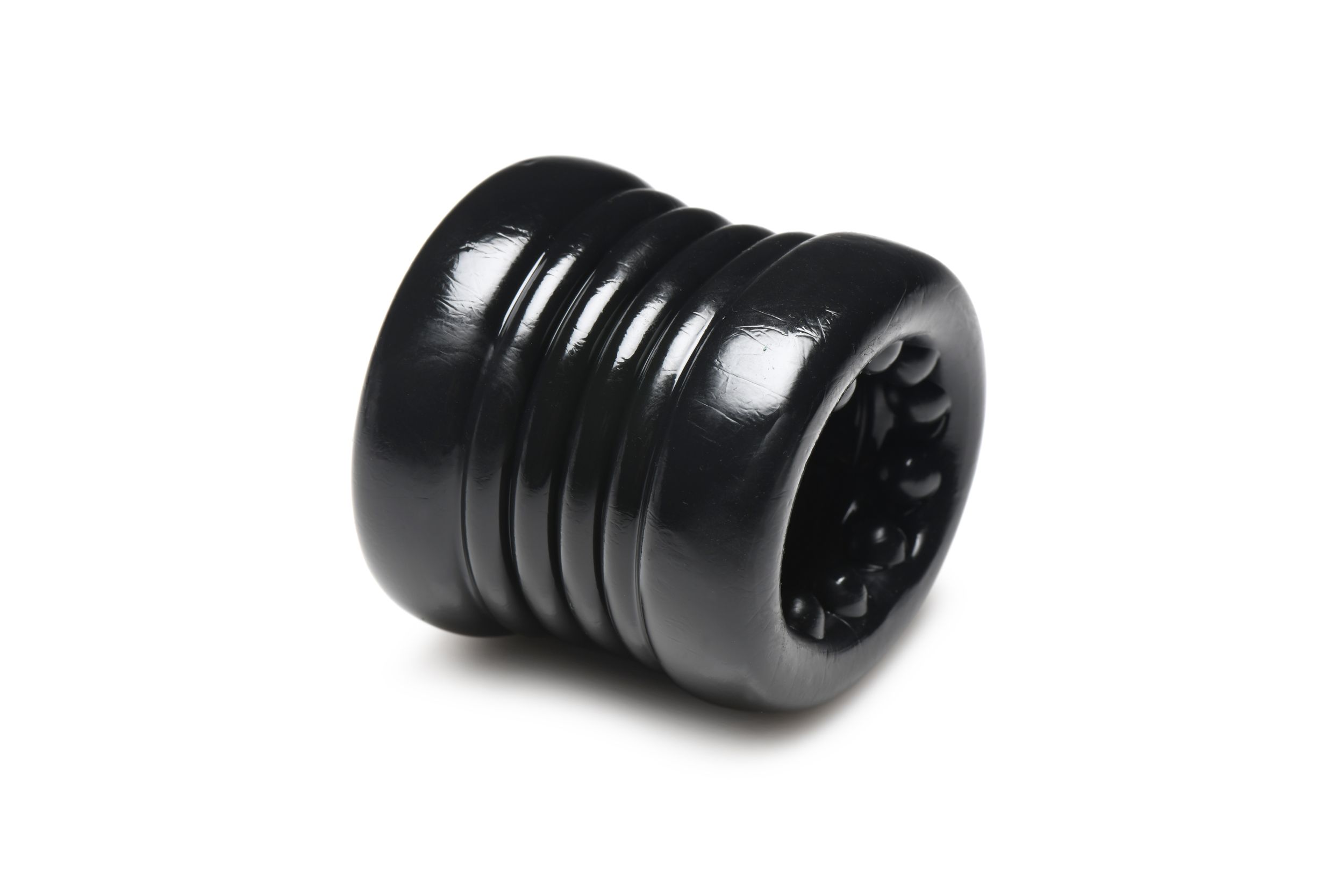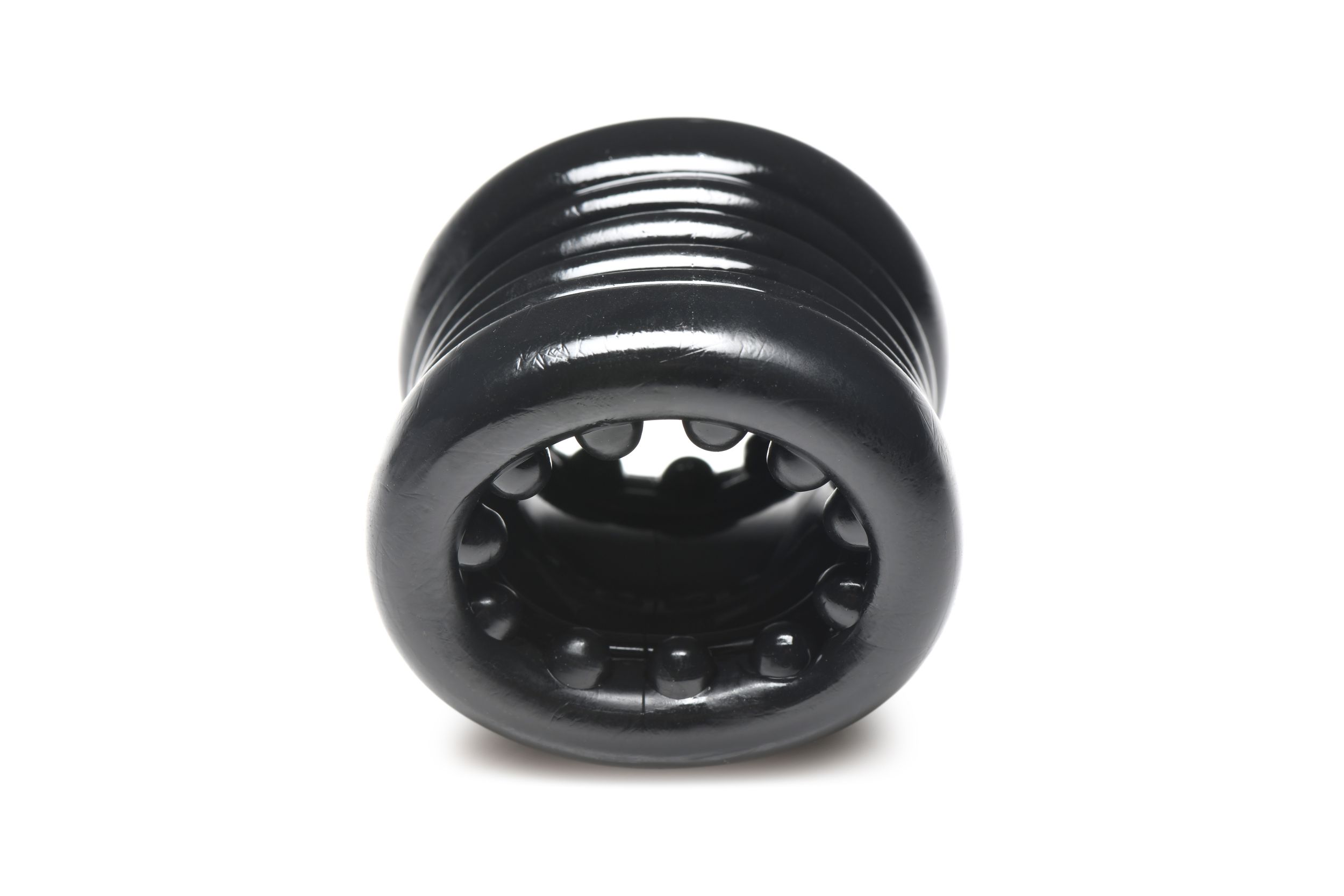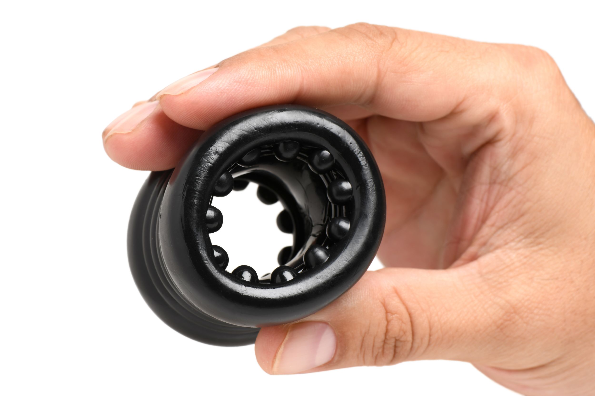 Този разтегател за топки е специално проектиран да съчетава комфорт и стимулация. Изработен от еластичен, безопасен за тялото TPE, той приляга перфектно около топките ви и ги държи здраво далеч от тялото ви. Разтегателят осигурява достатъчно разтягане, за да издърпа удобно топките ви надолу без болка или дискомфорт. Благодарение на своята гъвкавост, той остава удобен дори при продължителна употреба или при смяна на позициите. Това, което прави този разтегател за топки още по-специален, са редовете текстурирани издатини в двата края на тунела. Те добавят допълнителна стимулация и сцепление, правейки преживяването още по-интензивно. Не забравяйте да използвате лубрикант на водна основа за най-добри резултати и избягвайте петролни продукти. Почистването е лесно: използвайте топла вода и почистващ препарат за играчки и сте готови за следващата си игра. Когато нанасяте, нанесете малко лубрикант върху тялото и топките си, а също така намажете вътрешността на разтегателя. Внимателно издърпайте топките си надолу и се отпуснете колкото е възможно повече. Поставяйте по една топка в разтегателя. След като е на мястото си, издърпайте внимателно и проверете дали е използван достатъчно лубрикант, за да поддържа кожата гладка. Разтегателят помага за забавяне на оргазма ви, като същевременно засилва усещането. Оставете партньора си да се присъедини и се насладете на момента, докато най-накрая достигнете кулминацията.